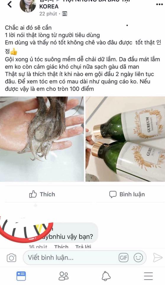 - Dầu xả Gureum giúp phục hồi tóc mềm mượt, chắc khỏe.
