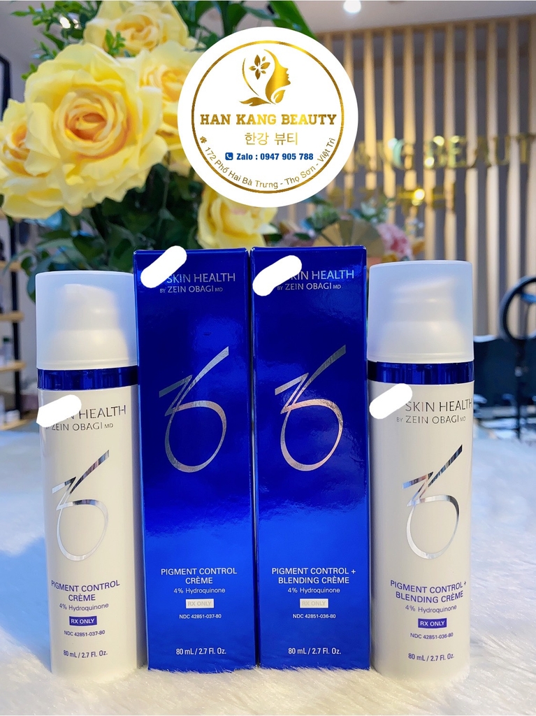 Kem đặc trị nám da Zo Pigment Control + Blending Creme 4% HQ được bào chế với công thức mang lại hiệu quả cao nhờ vào 4% Hydroquinone. Nồng độ lý tưởng Hydroquinone 4%, giúp ngăn chặn quá trình hoạt động của enzyme tyrosine, từ đó ức chế quá trình sản xuất sắc tố melanin. Ngăn ngừa và làm mờ nhanh các đốm nám sạm, tàn nhang, đốm nâu, đồi mồi… giúp da sáng mịn, cải thiện tone màu da để da đều màu và rạng rỡ hơn. Trong công thức còn chứa Glycolic Acid và Ascorbic Acid tối ưu hóa hiệu quả mờ nám, trắng da.