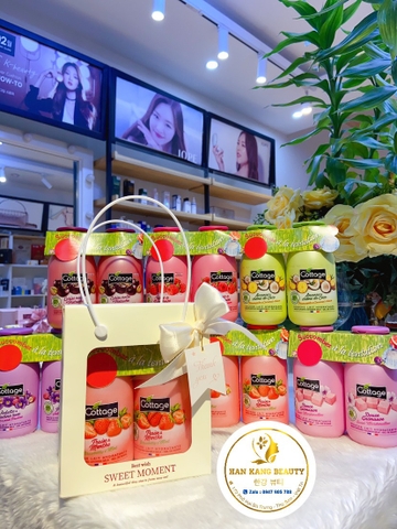 SaleSaleSet sữa tắm Cottage 4 chai tặng bông tắm ( hộp quà )