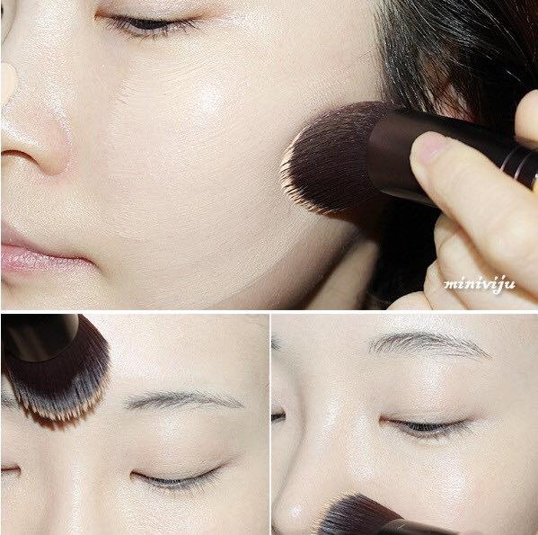 Chấm kem nền lên các điểm trên khuôn mặt, dùng cọ The professional foundation brush...
