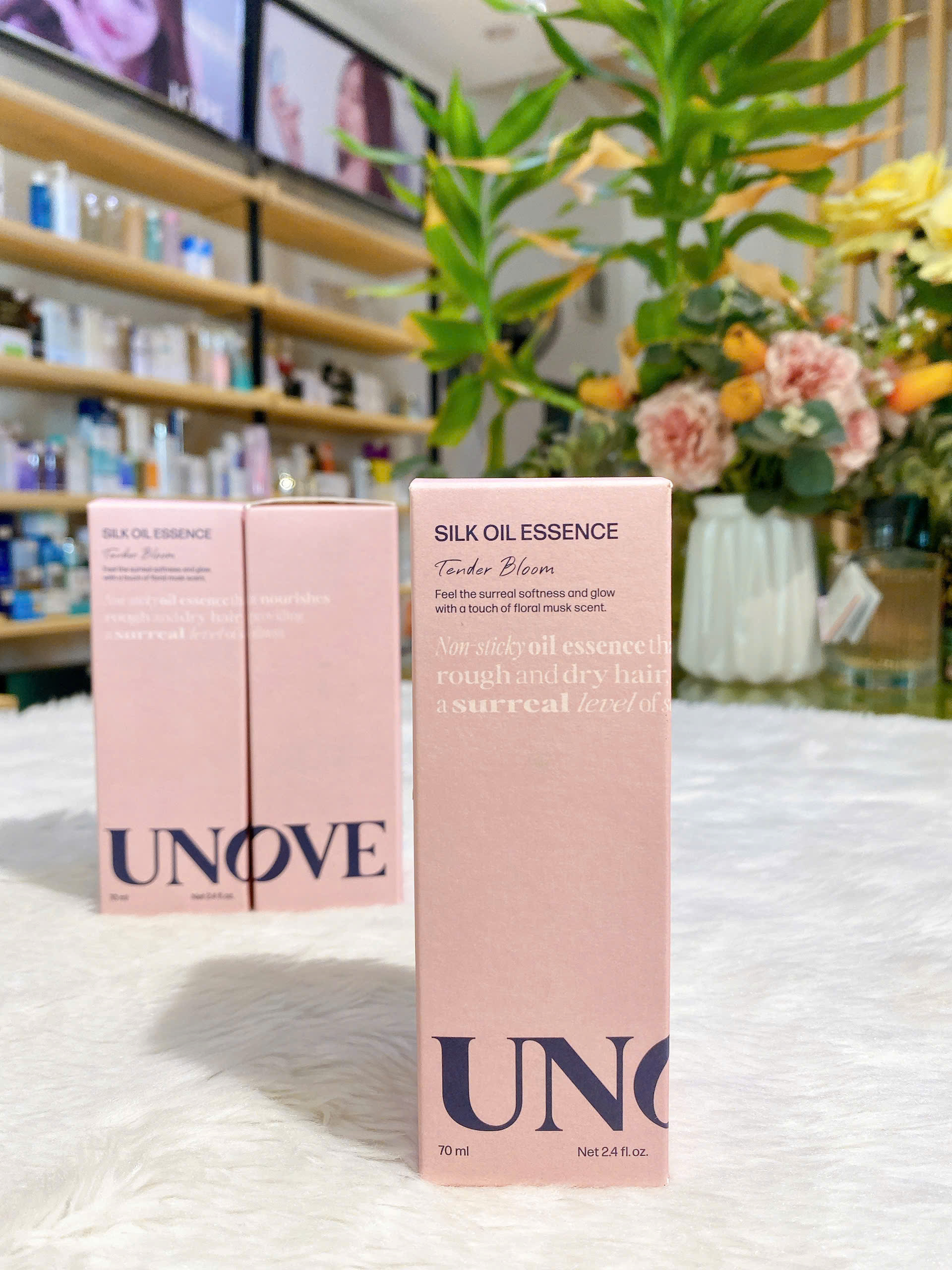 Tinh Chất Dưỡng Tóc UNOVE Chăm Sóc Tóc Khô Xơ, Hư Tổn, Bóng Mượt Silk Oil Essence là tinh chất dưỡng tóc thuộc thương hiệu UNOVE đến từ Hàn Quốc. Tinh chất được chiết xuất từ các thành phần thiên nhiên như dầu Argan, cỏ mực... giúp cân bằng độ ẩm và dầu của tóc, hạn chế chẻ ngon, cung cấp dưỡng chất thiết yếu giúp chăm sóc và nuôi dưỡng sợi tóc bóng mượt, chắc khỏe, cải thiện tóc khô xơ, hư tổn.