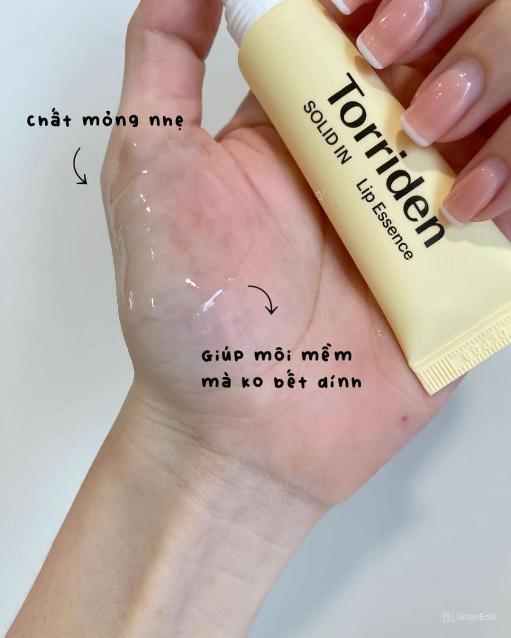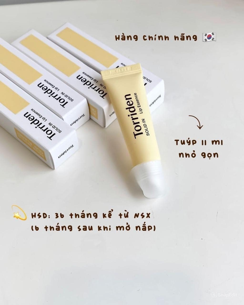 Tinh Chất Dưỡng Môi Torriden Căng Mọng, Cấp Ẩm Solid-In Lip Essence là son dưỡng thuộc thương hiệu Torriden. Với công dụng vừa cấp ẩm cho đôi môi khô nứt nẻ, vừa có công dụng tẩy da chết nhẹ nhàng mang đến môi mềm mại và căng mọng.