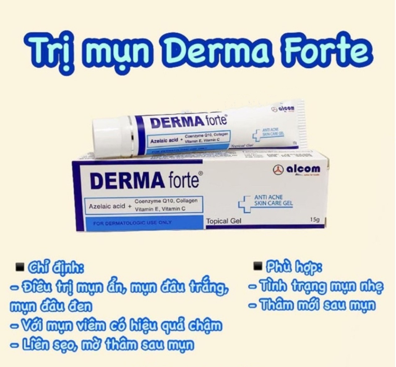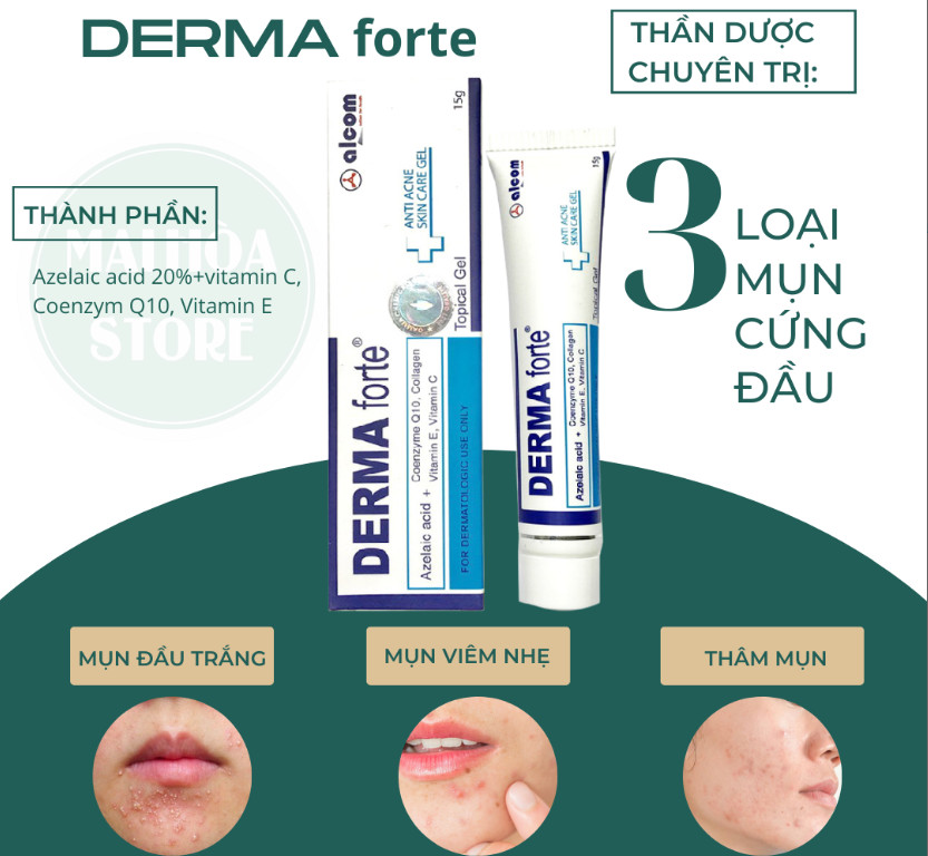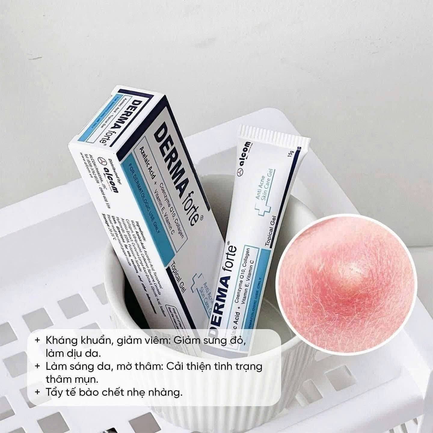 Nhờ công thức bào chế tiên tiến với nền gel không nhờn, dễ thấm nên Derma Forte không những ức chế, tiêu diệt Propionibacteria acnes, vi khuẩn yếm khí tồn tại trong nang tiết bã nhờn, trong nhân mụn mà còn thấm sâu ngăn cản việc hình thành nhân mụn