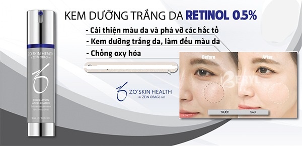 - Zo retinol 1% dưỡng trắng da bằng cách tham gia việc “tấn công” vào các hắc sắc tố xuất hiện trên gương mặt, chuyển những hắc sắc tố này thành nhiễm sắc tố làm trắng da từ đó Mở ra được cải thiện một cách rõ rệt.