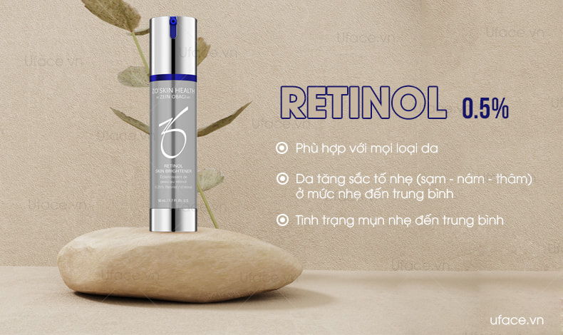 - Zo skin health retinol skin brightener 0.5% cho làn da có khả năng cải thiện tối đa màu da trở nên trắng sáng và loại bỏ nhanh các hắc sắc tố gây ra vấn đề về nám sạm da và vấn đề da không đều màu.