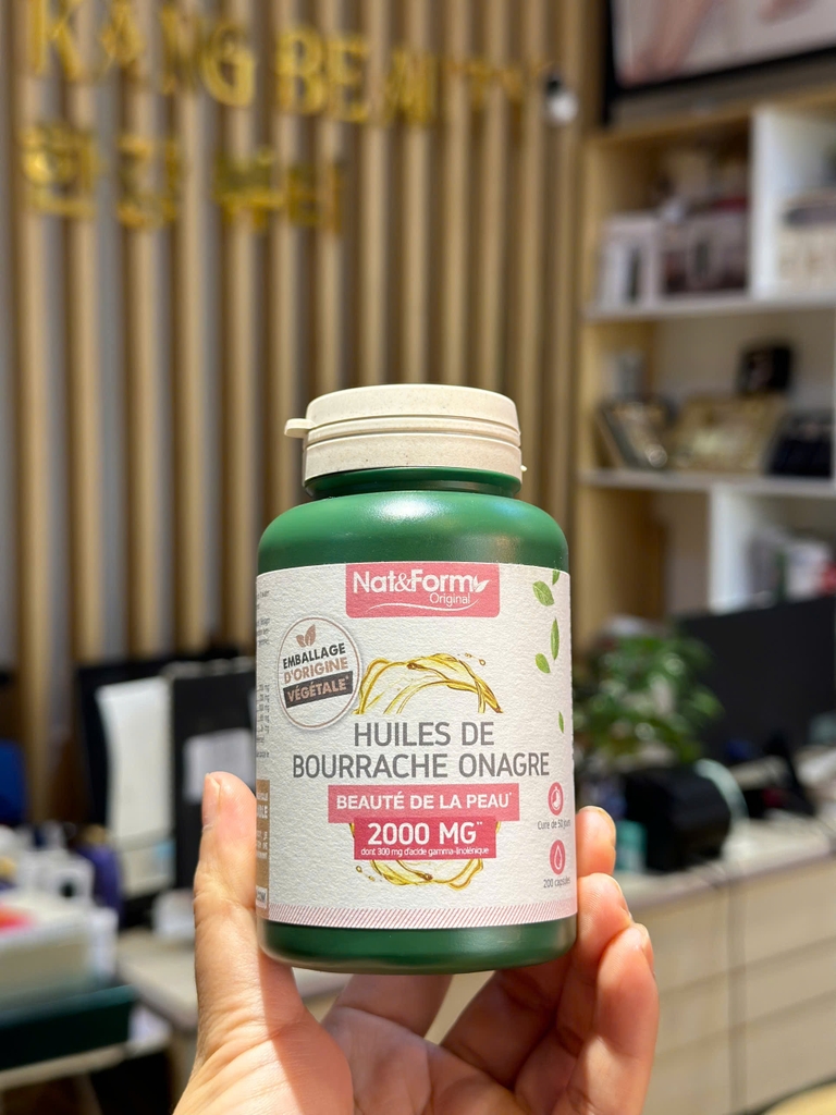 - Với dưỡng chất của dầu lưu ly, dầu hoa anh thảo ép lạnh và vitamin E, Viên uống tinh dầu hoa anh thảo Nat & Form sẽ giúp hỗ trợ giảm thiểu nếp nhăn, hỗ trợ làm giảm các dấu hiệu tuổi tác trên da cũng như giúp da căng bóng , tươi trẻ.