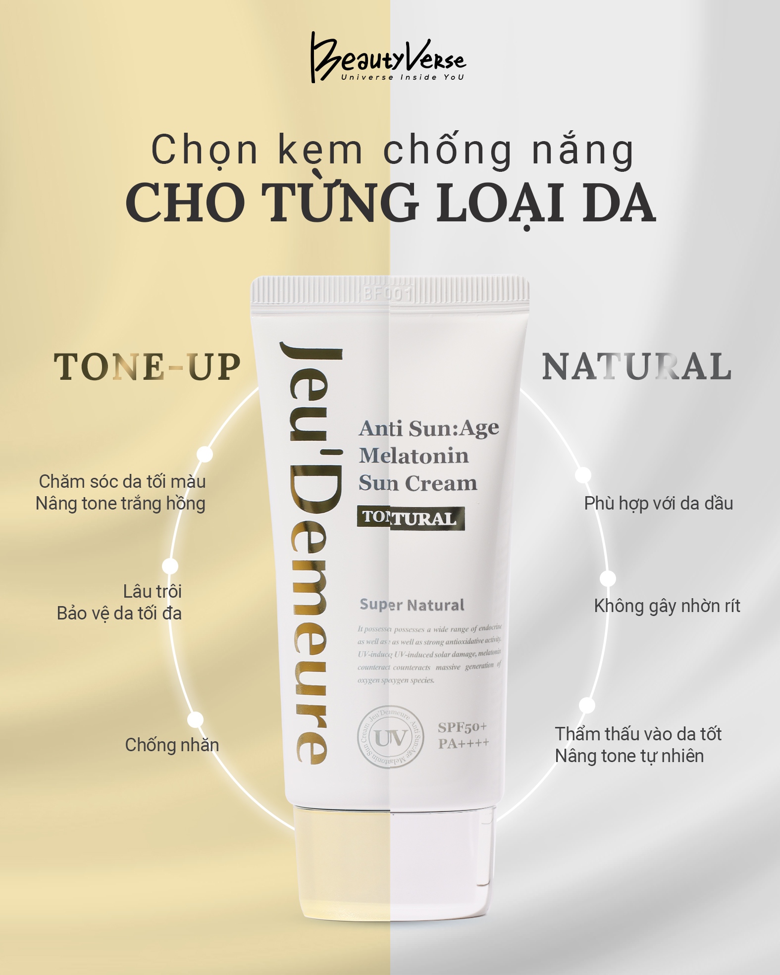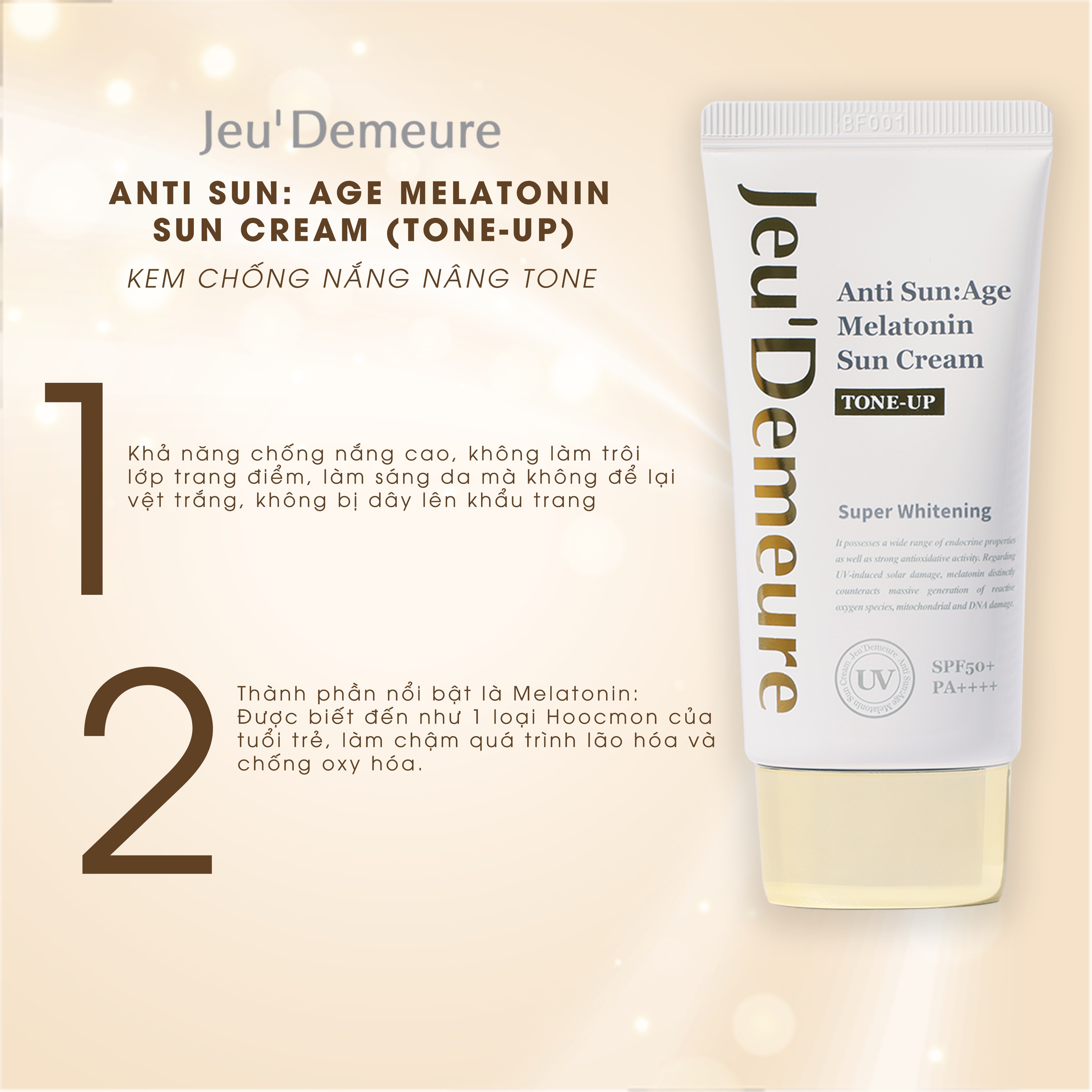 Kem chống nắng nâng tone Jeu'Demeure Anti Sun:Age Melatonin Sun Cream Tone Up