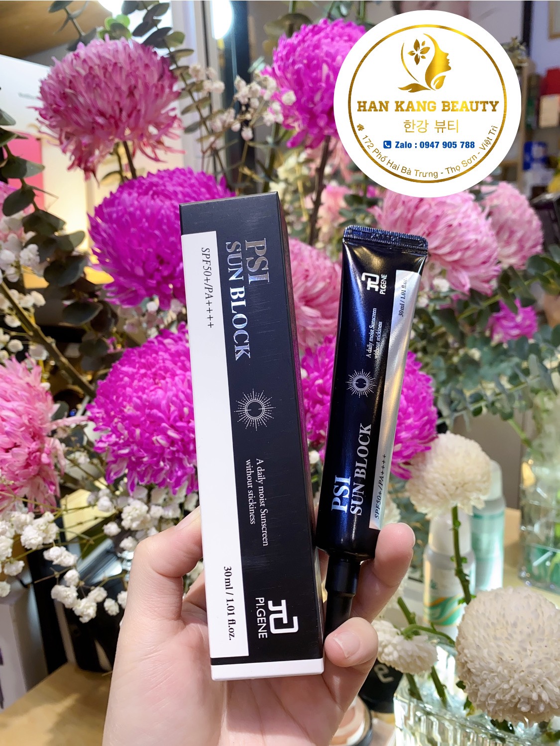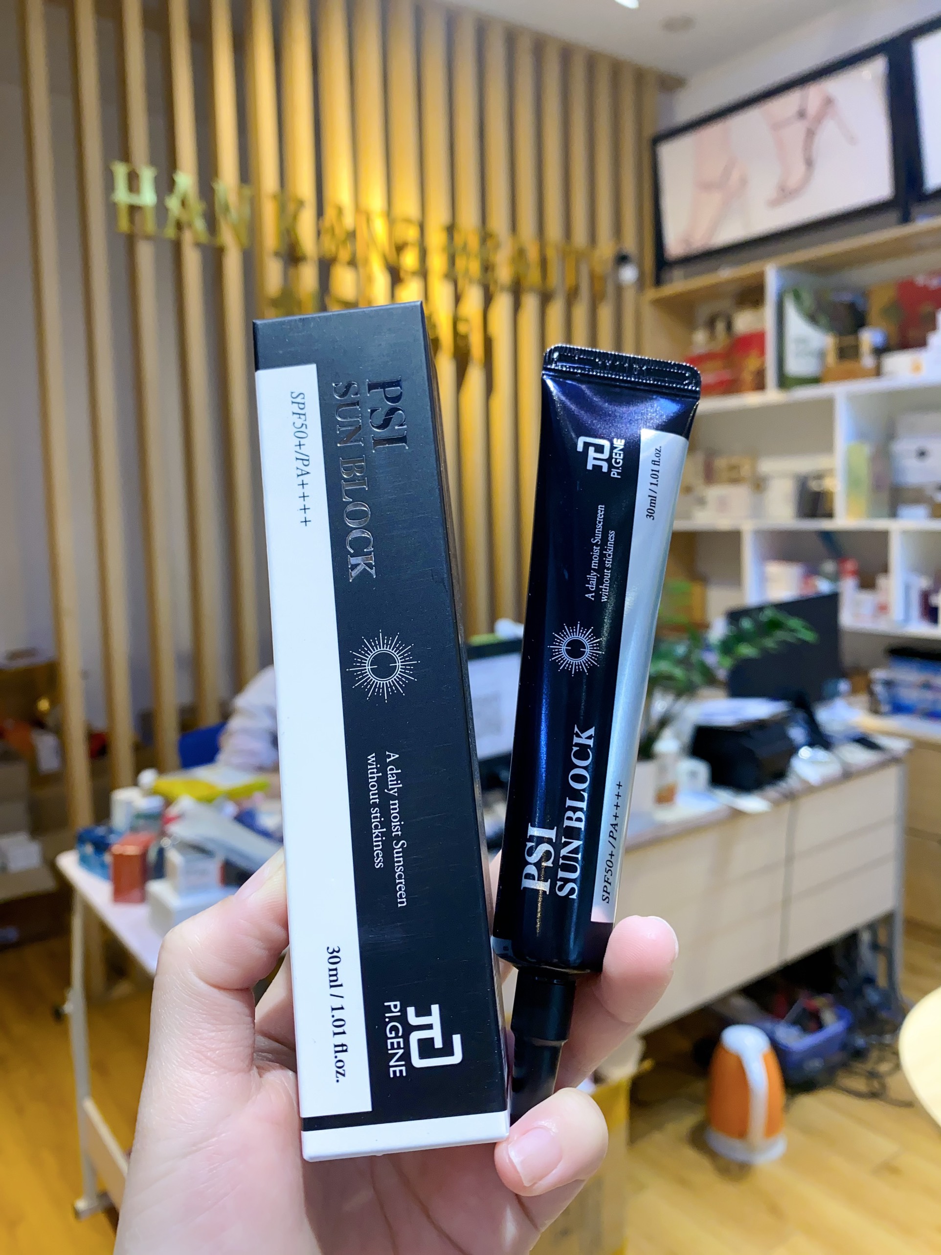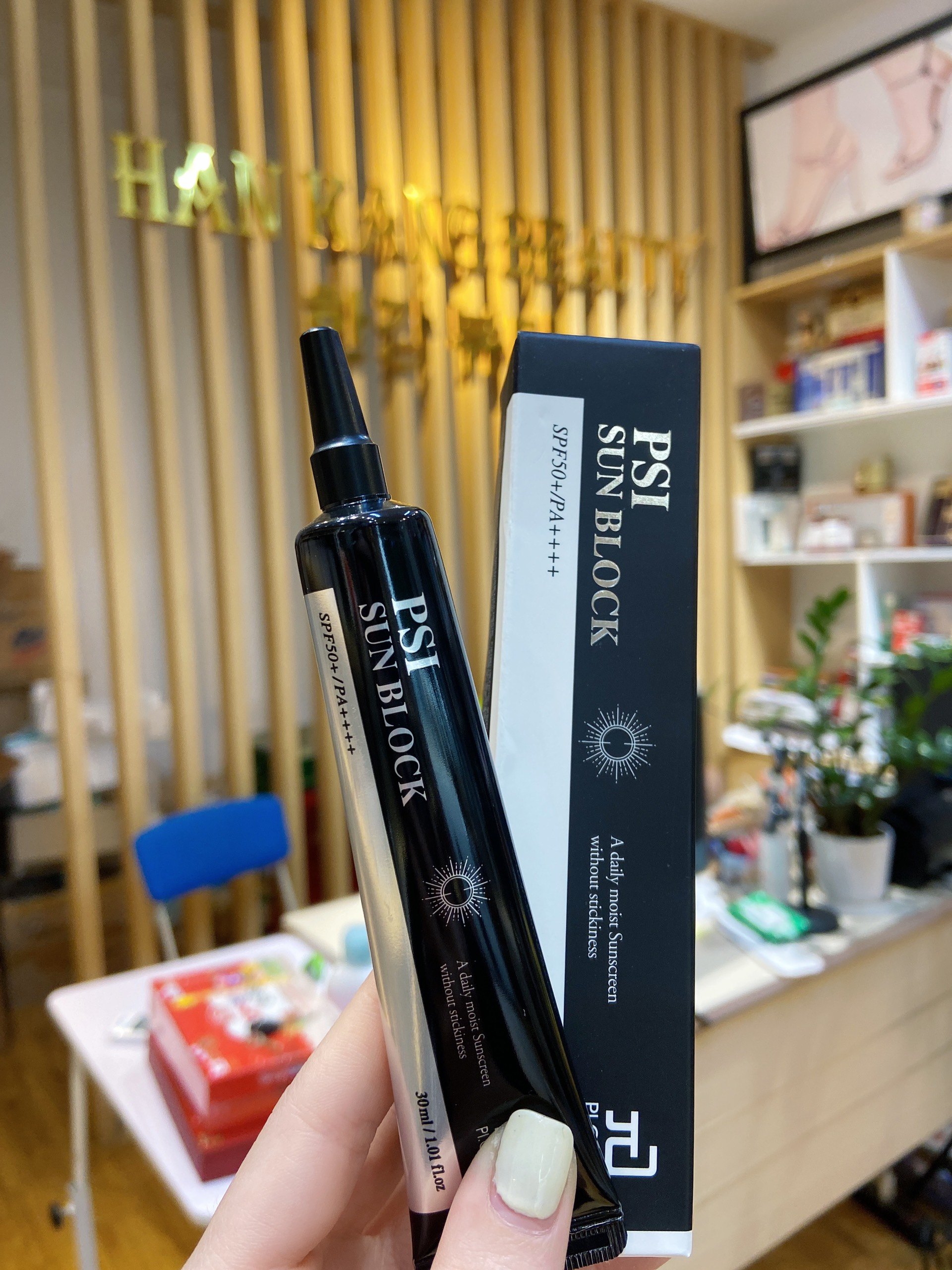- Kem chống nắng tái sinh cho da yếu, nhạy cảm PSI Sun Block SPF50+PA++++ có độ chống nắng cao chống được tia UVA, UVB tốt nhất.