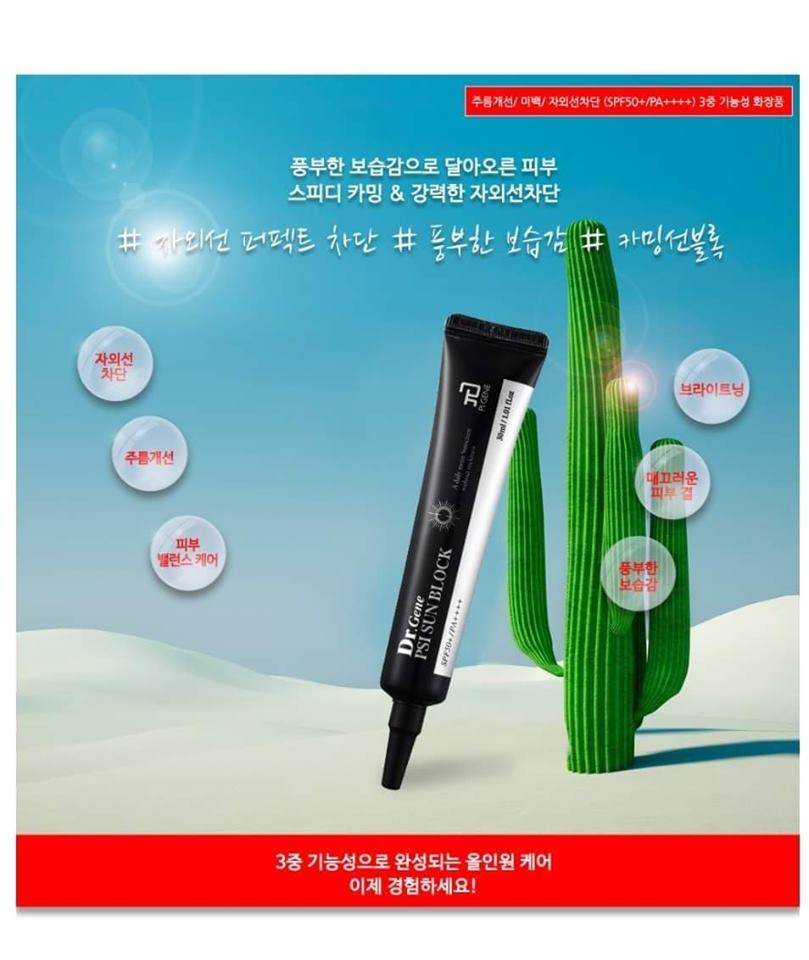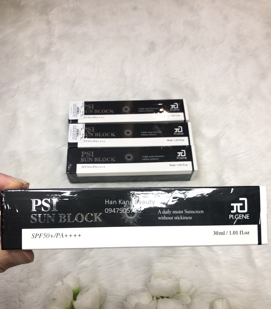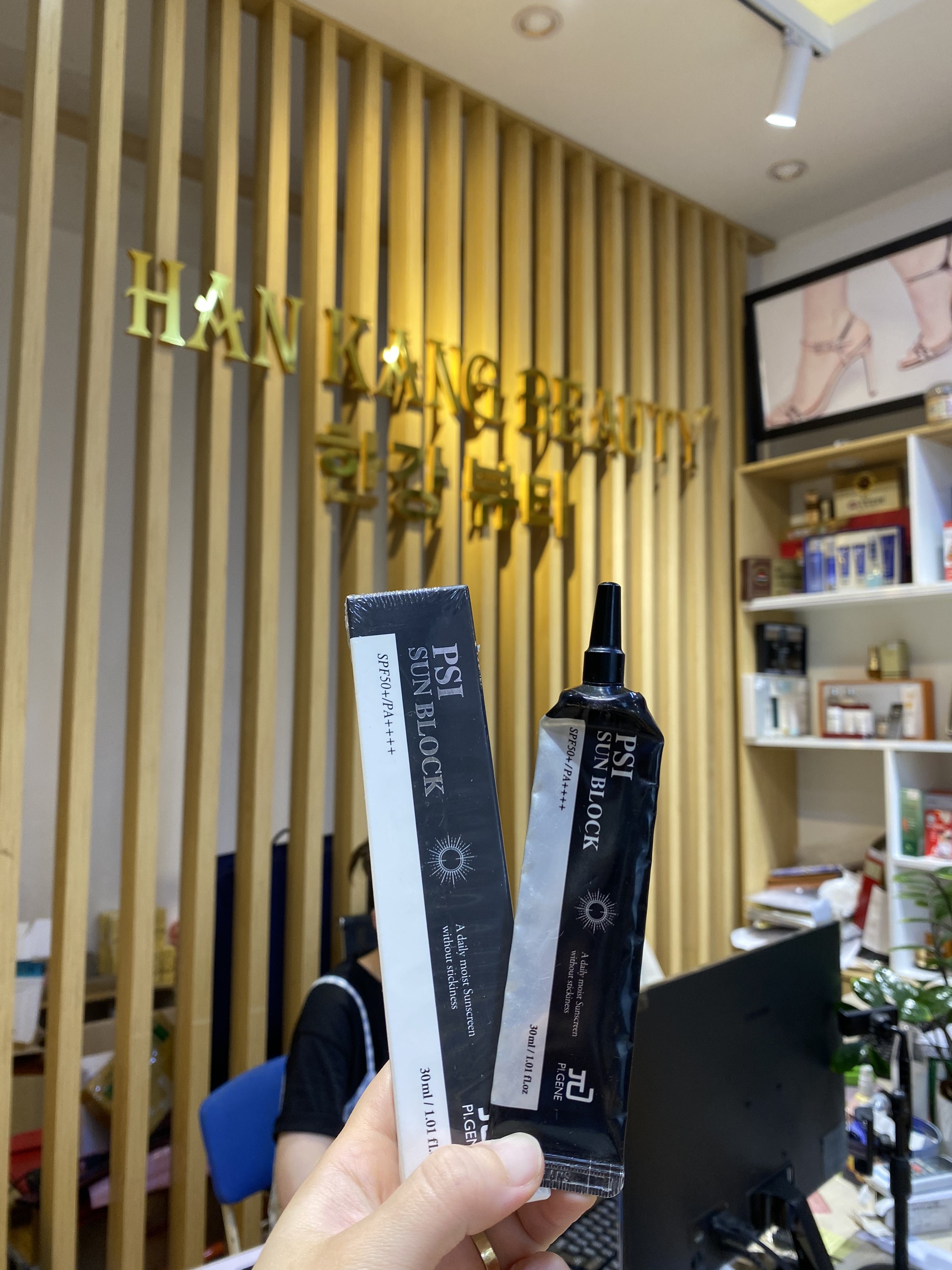 - Kem chống nắng tái sinh cho da yếu, nhạy cảm PSI Sun Block SPF50+PA++++ có độ chống nắng cao chống được tia UVA, UVB tốt nhất.