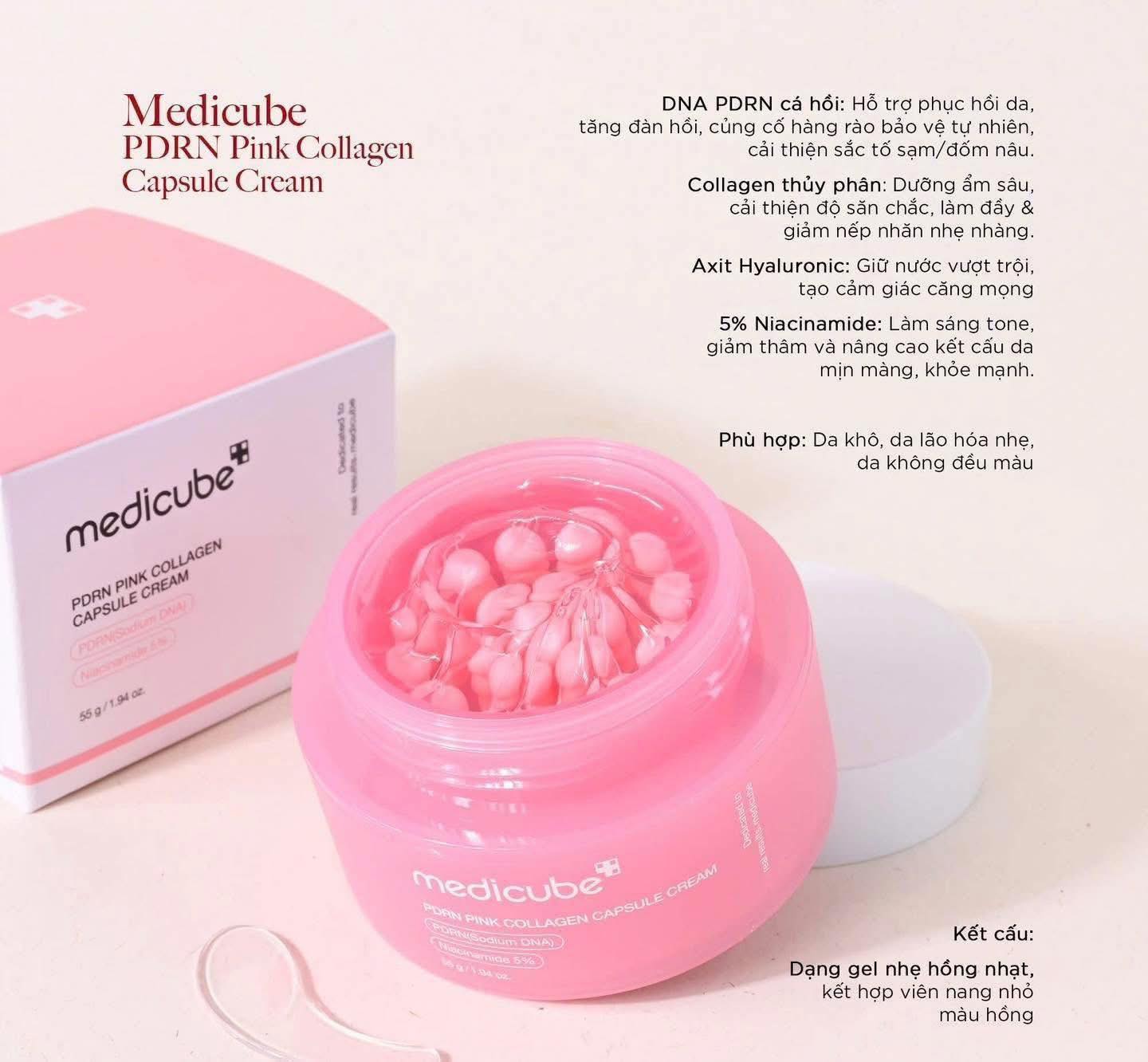 Kem Dưỡng Viên Nang Cấp Ẩm, Phục Hồi, Làm Trắng, Săn Chắc Da Medicube PDRN Pink Collagen Capsule Cream 55g