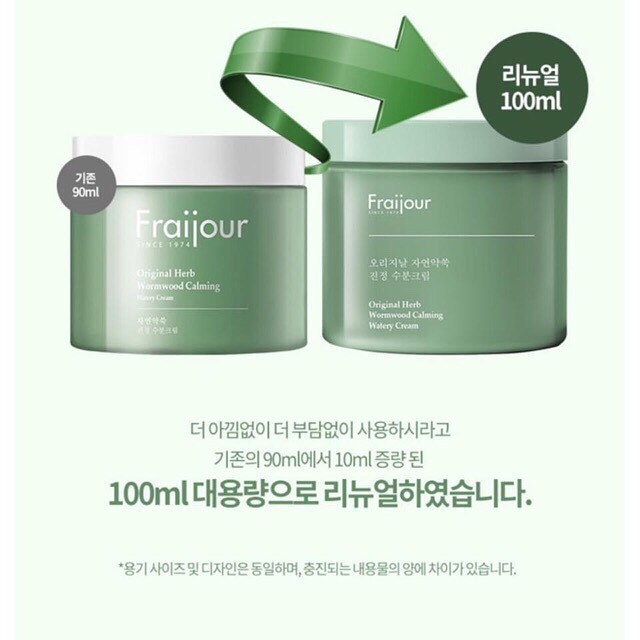 Kem dưỡng thảo mộc Fraijour Original Herb Wormwood Calming Watery Cream là sản phẩm dưỡng chiết xuất từ thảo mộc an toàn với mọi loại da.