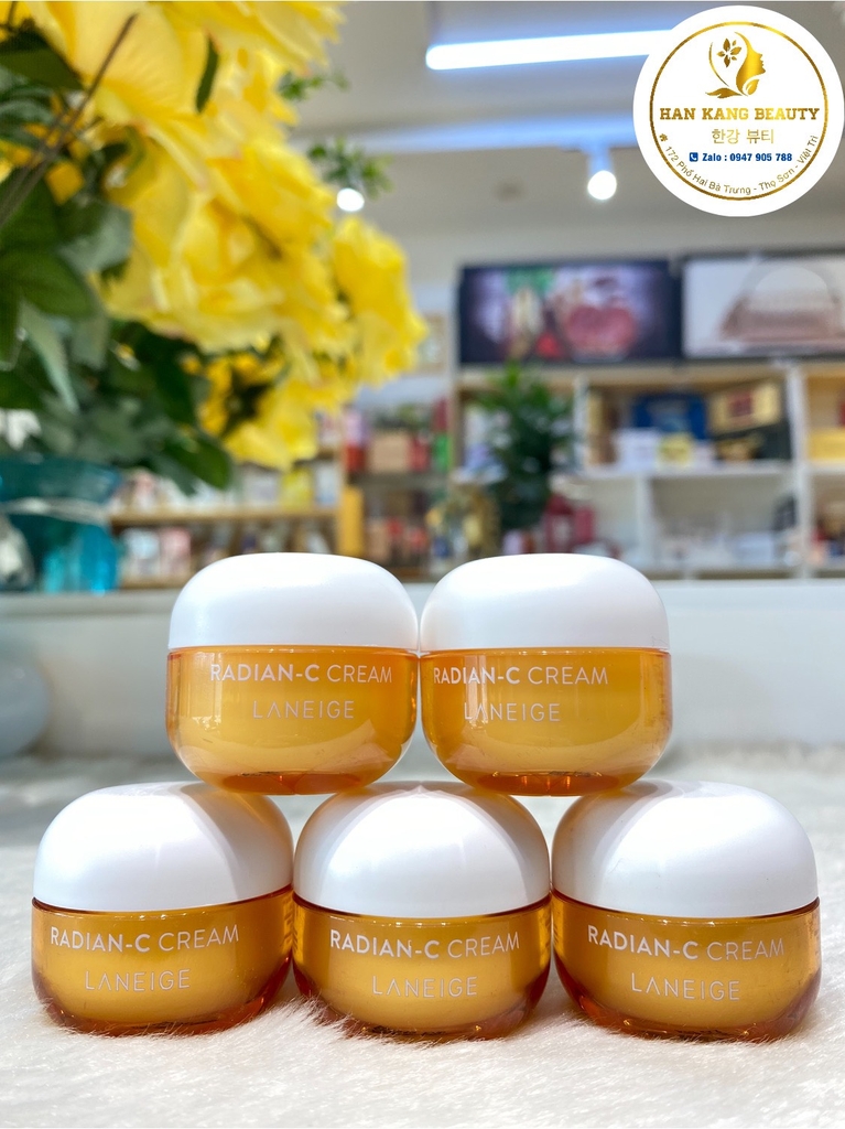 - Kem dưỡng ẩm sáng da Laneige Radian C Cream với những tính năng vướt trội làm sáng da, cân bằng sắc tố da, đặc biệt là khả năng cấp ẩm, dưỡng ẩm tăng độ đàn hồi cho là da luôn căng tràn, mềm mại và trắng sáng không tì vết