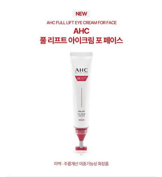 Kem Dưỡng Hỗ Trợ Trẻ Hóa Da Mặt Và Mắt AHC 3X Collagen Exoert Full Lift Eye Cream For Face 40ml là một sản phẩm mới ra mắt của nhà AHC (Hàn Quốc). Sản phẩm được lấy cảm hứng từ liệu trình Hifu săn chắc da, chứa 4 loại collagen và 4 loại peptide giúp tăng sinh collagen, tăng độ đàn hồi và săn chắc làn da.
