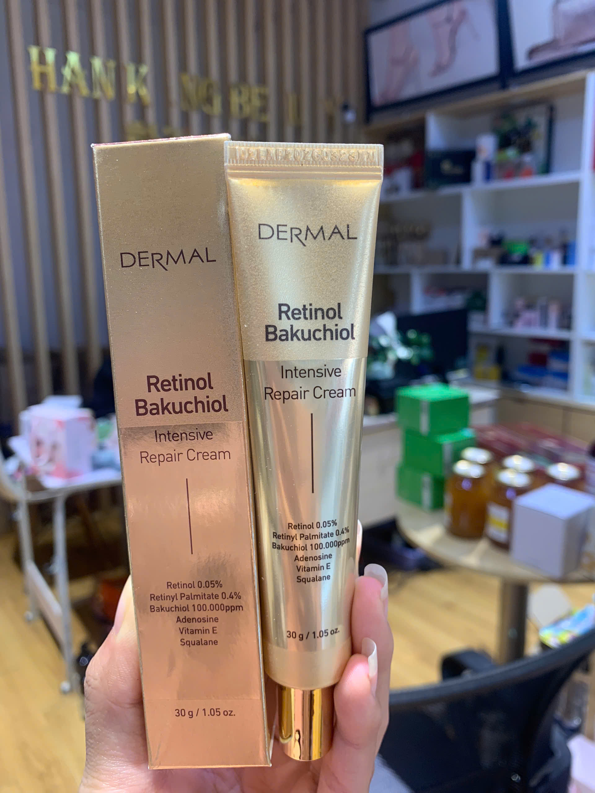 Retinol 0.5%: Là dẫn xuất của vitamin A, thành phần chống oxy hóa hiệu quả nhất. Sử dụng retinol sẽ giúp tăng sản xuất collagen, giúp da đàn hồi tốt hơn và ngăn ngừa sự hình thành nếp nhăn.