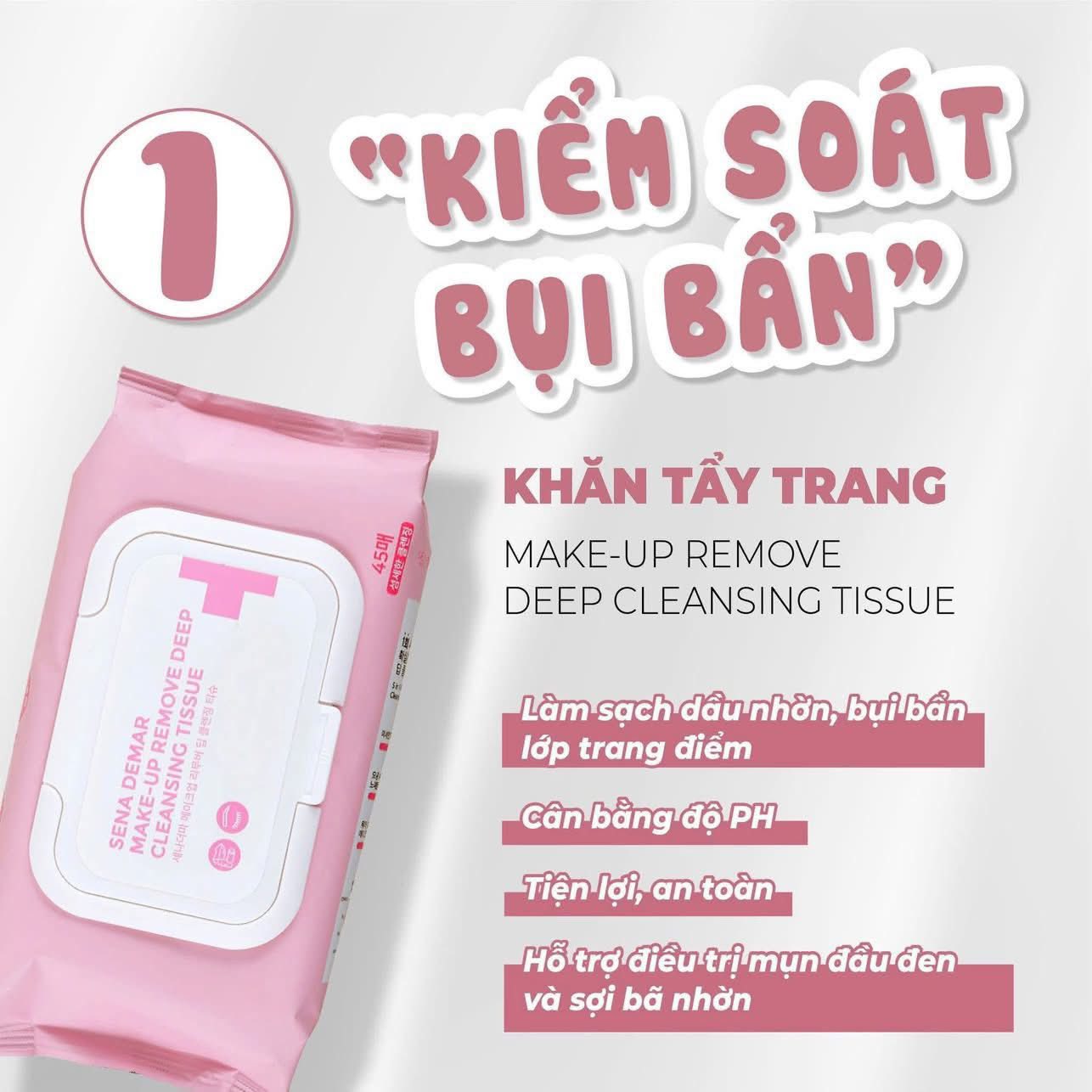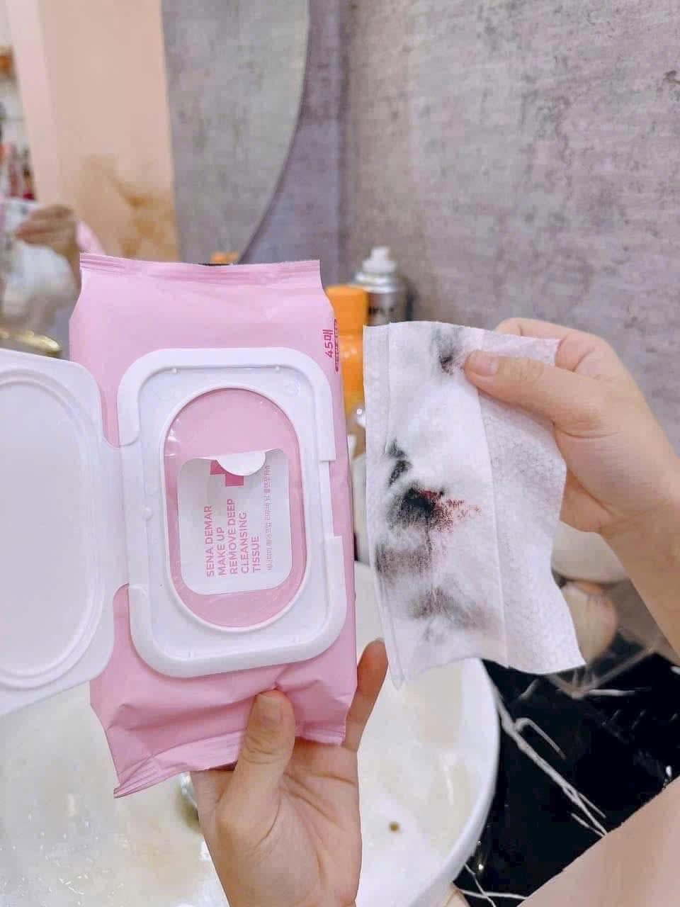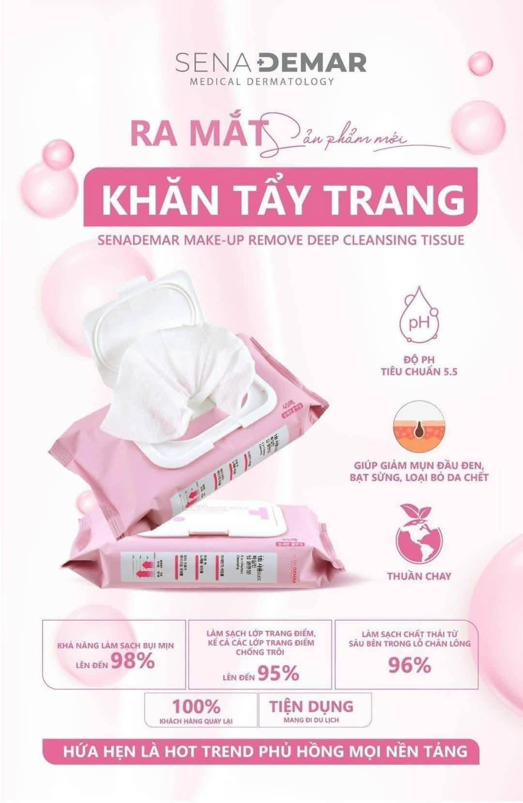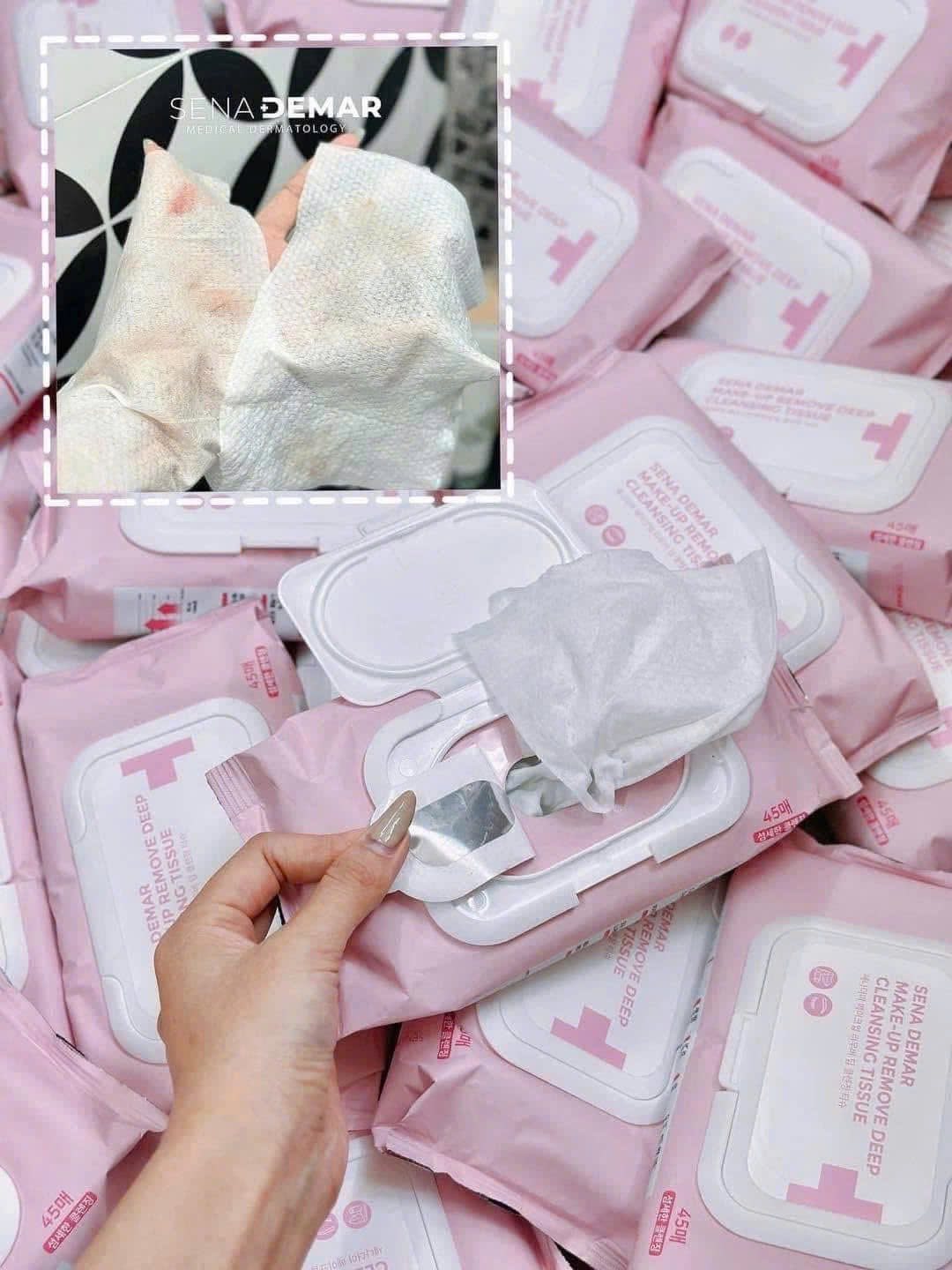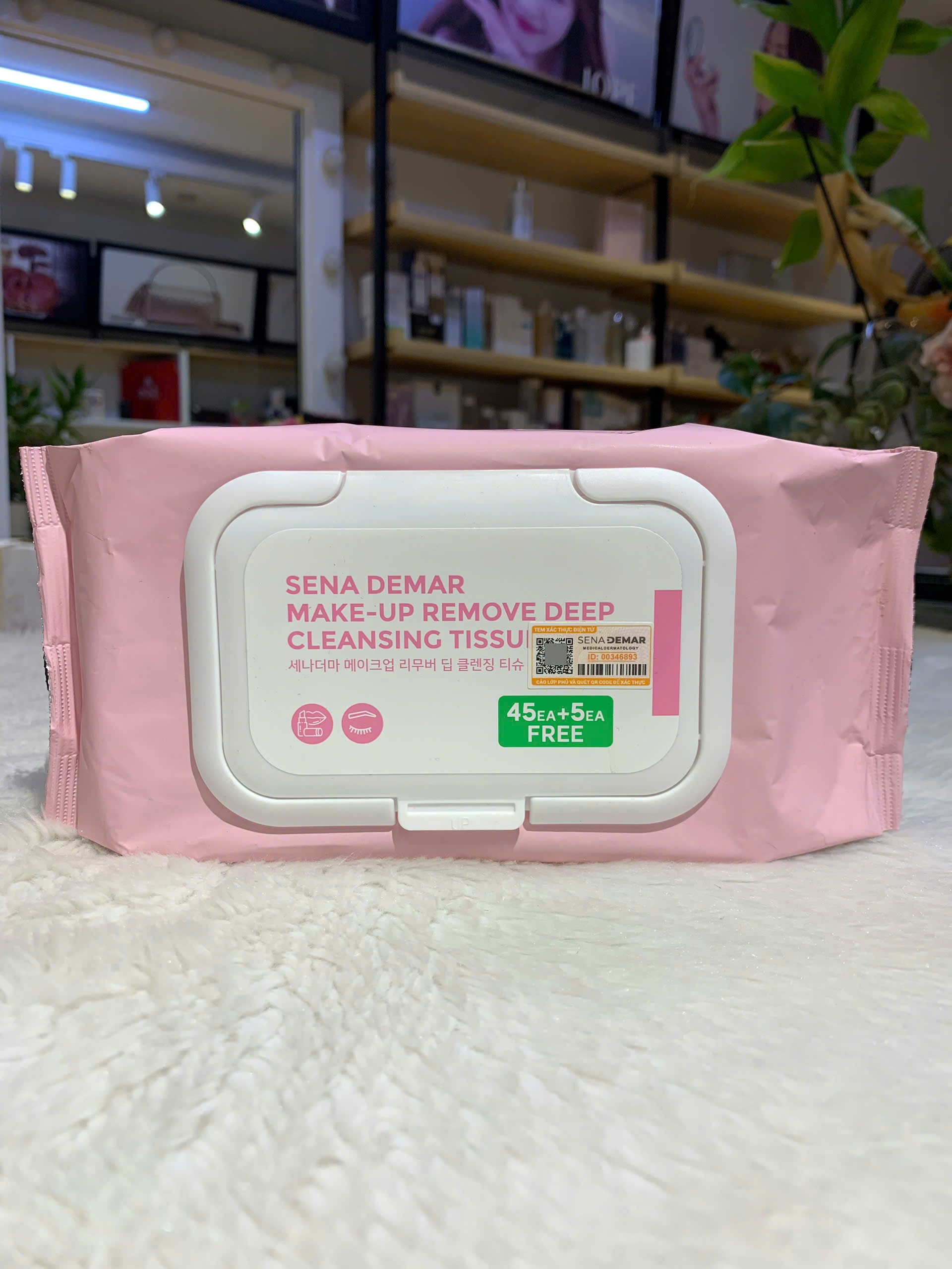 - Khăn Tẩy Trang Thuần Chay 3in1 Sena Demar Make-Up Remove Deep Cleansing Tissue 45 Miếng là một trong những sản phẩm nổi bật của thương hiệu, giúp làm sạch lớp trang điểm một cách hiệu quả, kể cả các lớp trang điểm chống trôi, mà vẫn giữ cho làn da mềm mại và không bị khô.