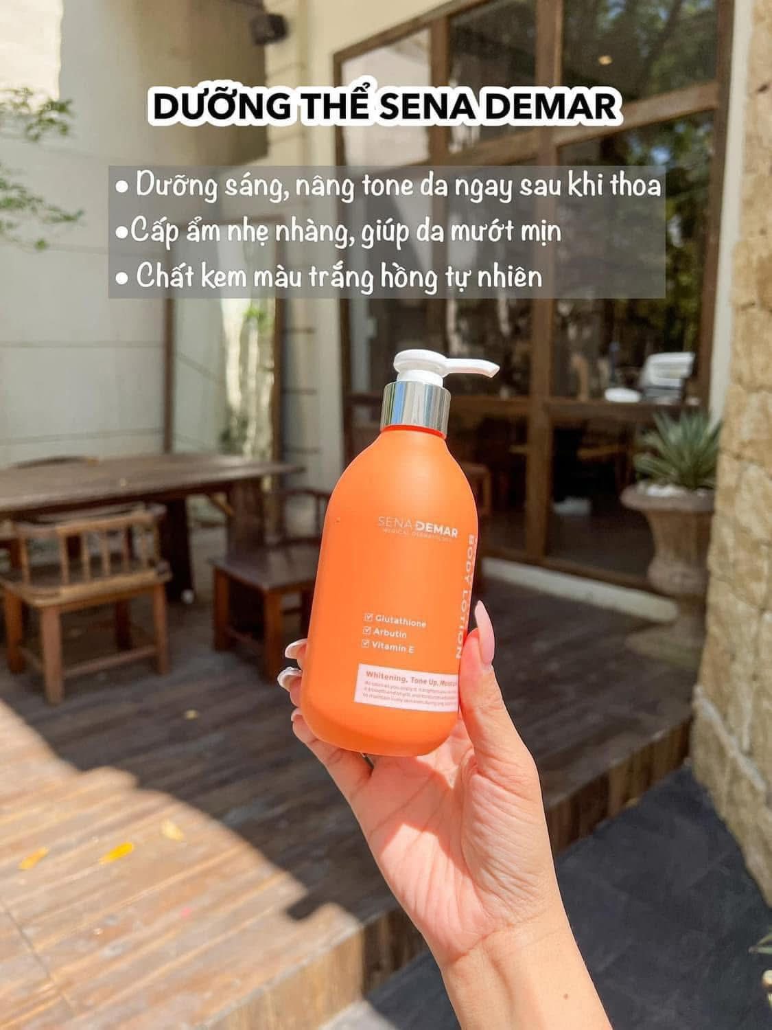 Dưỡng Thể Sena Demar 10x White Body Lotionn là dòng kem dưỡng thể cho body với công thức độc đáo và thành phần thiên nhiên an toàn, giúp cải thiện sắc tố da, dưỡng da trắng mịn đều màu, sửa chữa tế bào da cháy nắng giúp da trắng hồng, đều màu rạng rỡ.