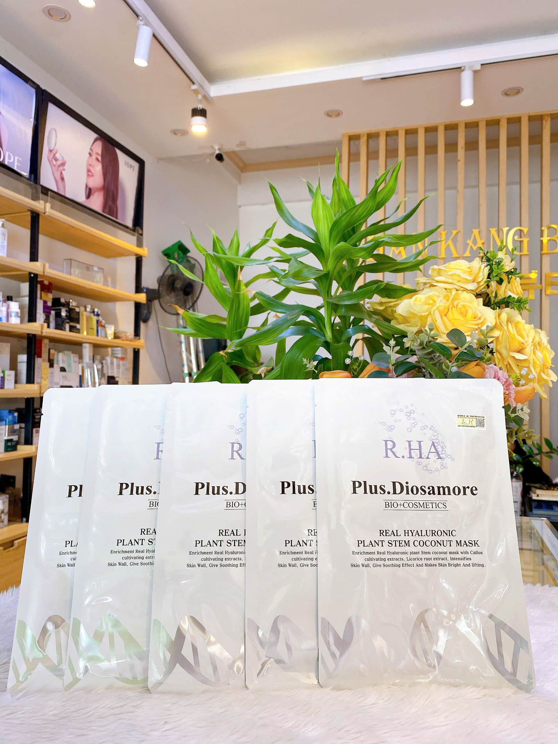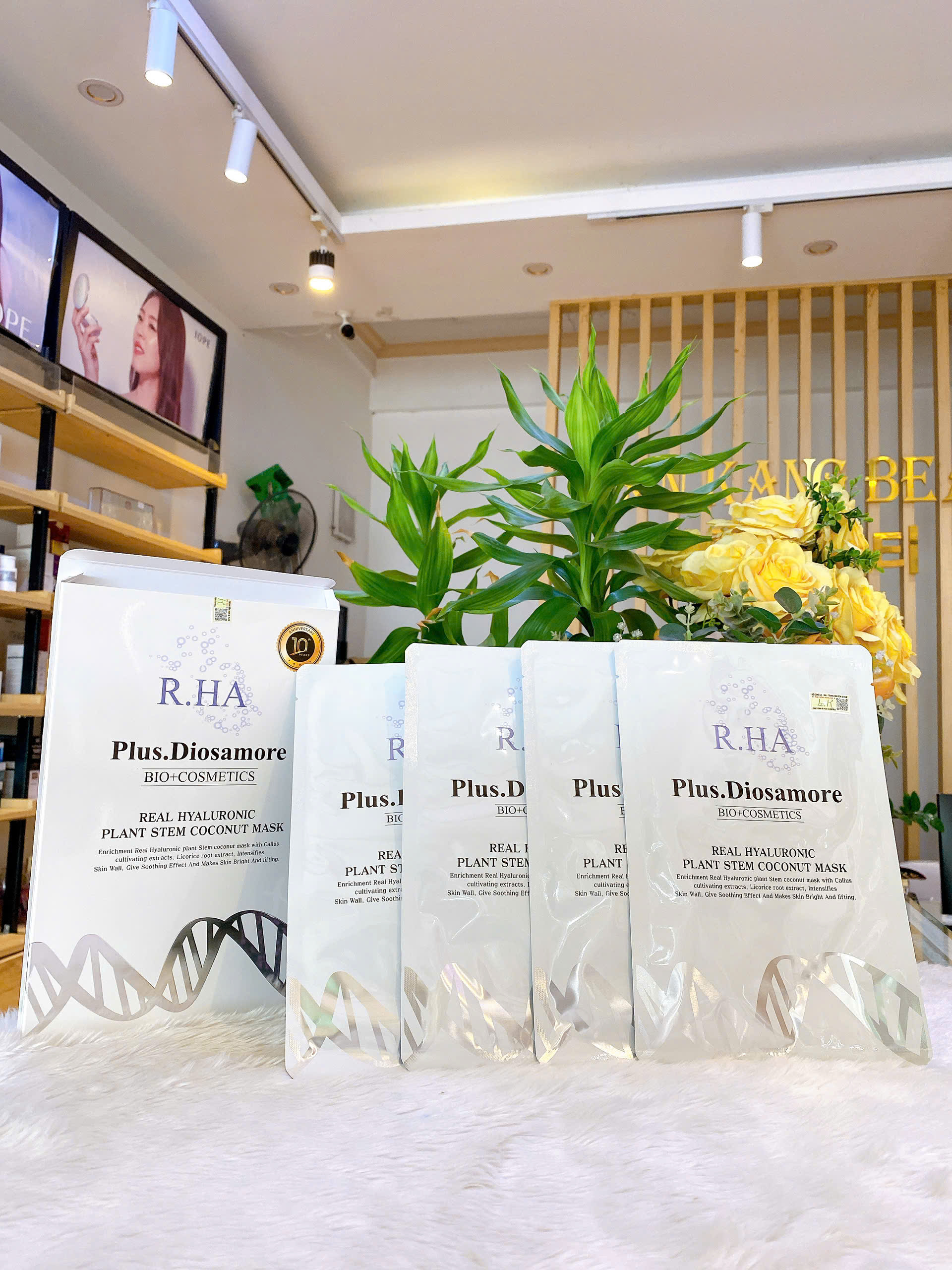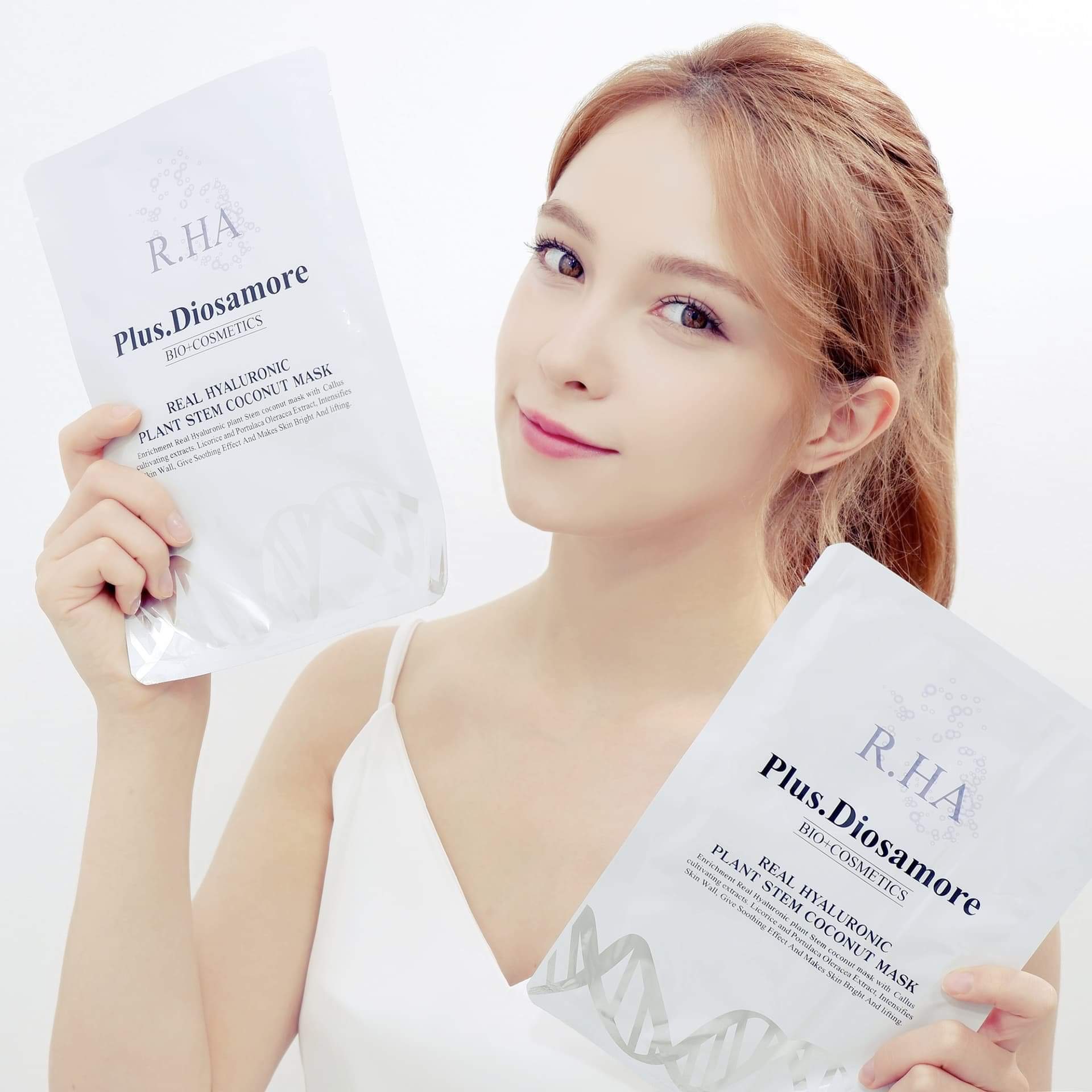 1. Mặt nạ tế bào gốc căng bóng trắng da PLUS DIOSAMORE được chiết xuất từ Noãn thực vật (DỪA) và thành phần MULWANG HYAROLUNIC với điểm cộng “to đùng”: