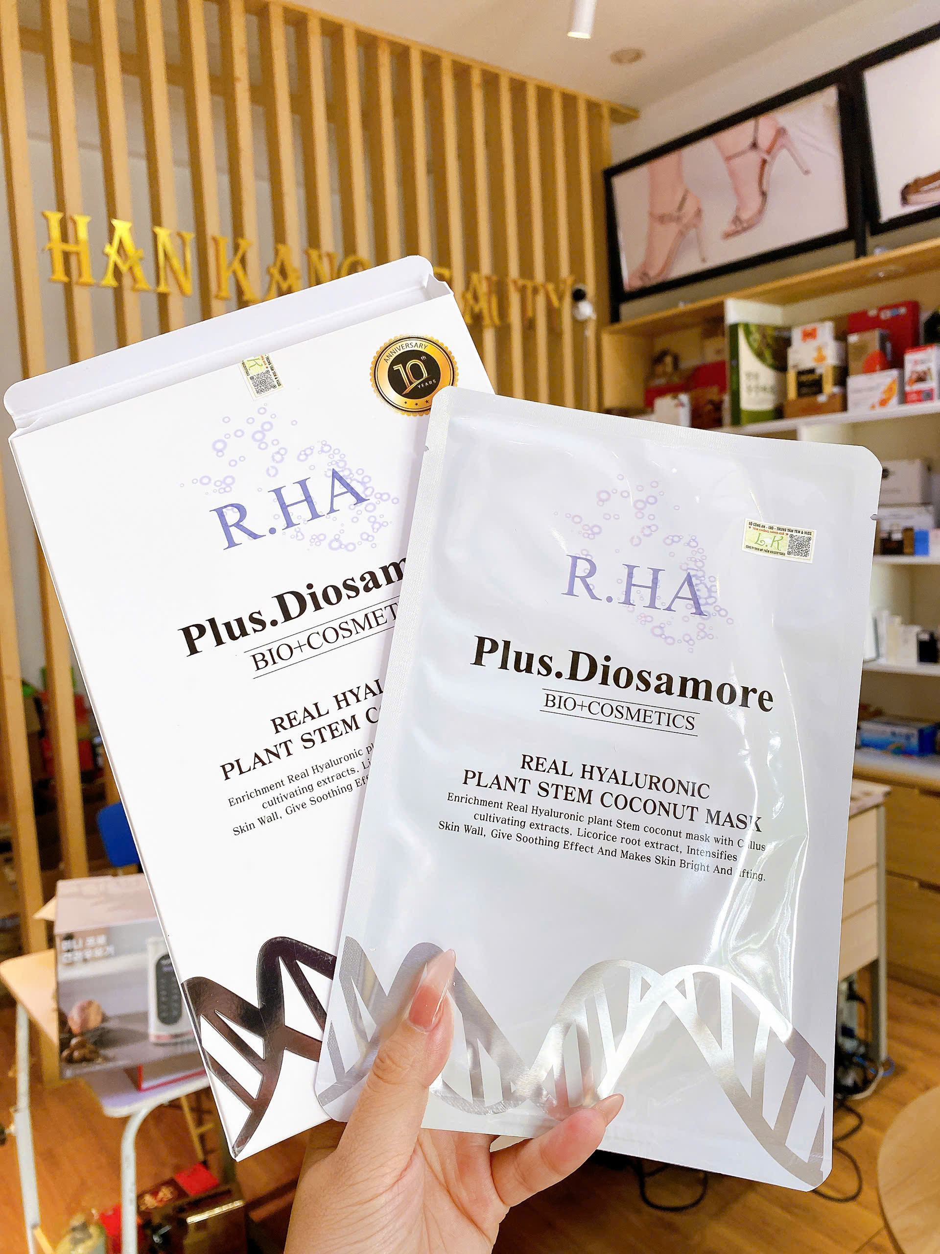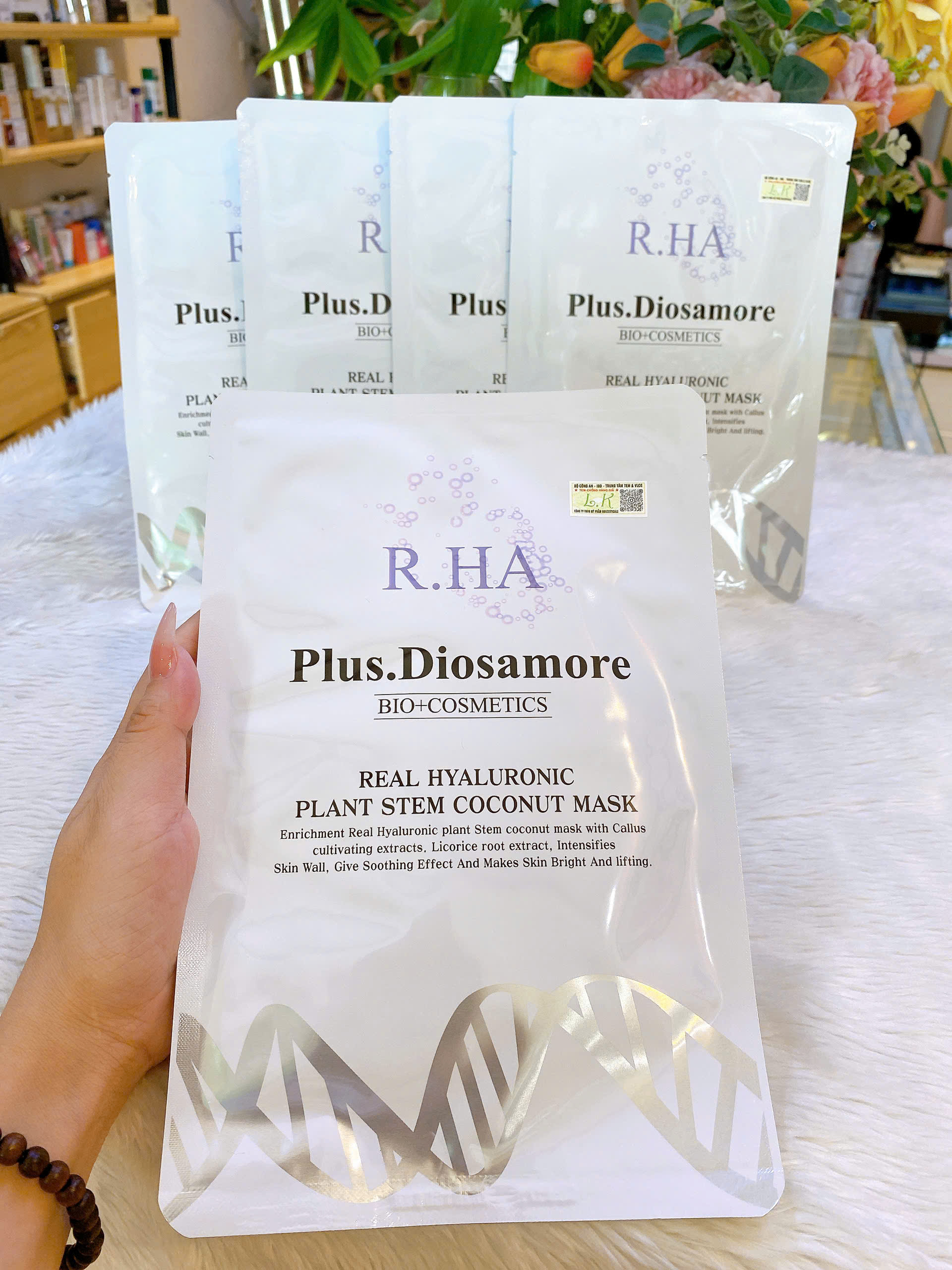 MẶT NẠ TẾ BÀO GỐC CĂNG BÓNG TRẮNG DA PLUS DIOSAMORE_PHÉP MÀU SẮC ĐẸP CỦA NỮ THẦN Phiên bản CAO CẤP của nạ tế bào gốc Laksmira phiên bản cũ TĂNG GẤP 5 LẦN LƯỢNG CĂNG BÓNG HYARORUNIC VÀ THÀNH PHẦN TRẮNG DA VITAMIN B3. Mặt nạ cao cấp 3 lớp: lớp vải lụa + lớp noãn dừa + lớp nhựa cứng => vì vậy 1 miếng nạ có thể đắp được 2 lần.
