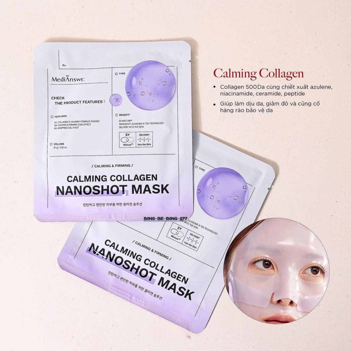 + Medianswer Phục Hồi Dịu Da Calming Collagen Nanoshot Mask (Tím): Hỗ trợ giúp dịu da, giúp da thêm đàn hồi. Phù hợp với da thường, da nhạy cảm, Da lão hóa, da treament cần phục hồi