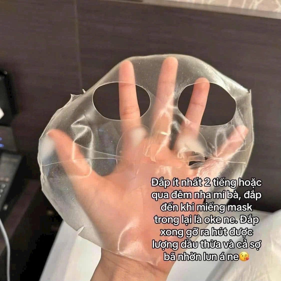 3. Sau khoảng 2h hoặc đến khi mặt nạ tan mỏng dính, tháo mặt nạ ra bôi các bước khóa ẩm tiếp theo.