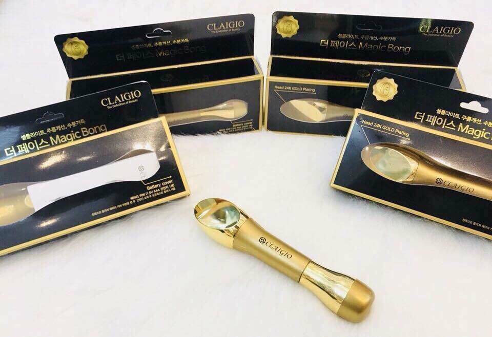 - Claigio đã rất thành công trong việc thiết kế một chiếc máy Massage Claigio Galvanic ion với sự kết hợp của các ion, sóng siêu âm, và đầu máy được mạ vàng 24k rất đẹp mắt và tiện lợi.