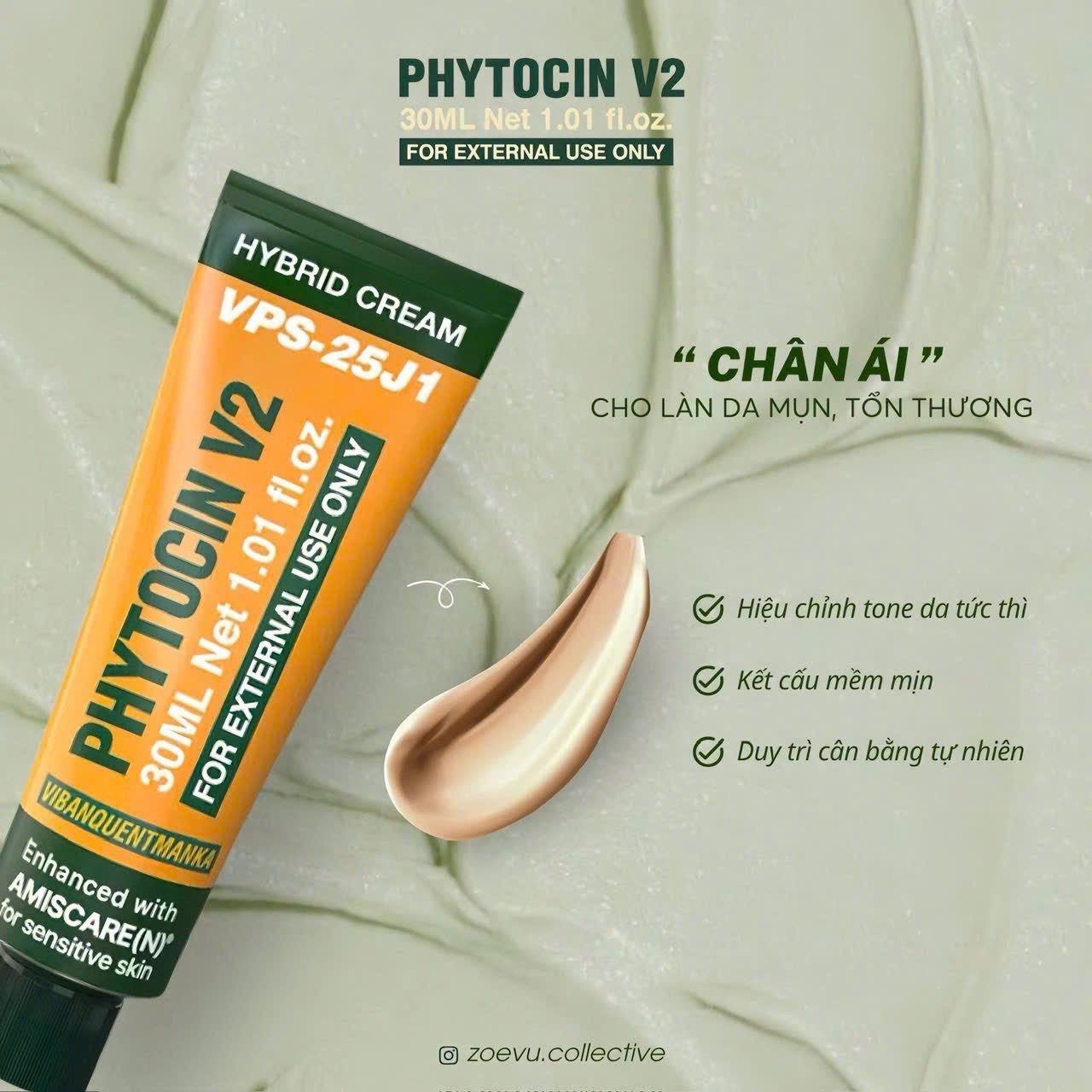 VQM PHYTOCIN V2 là kem dưỡng ẩm và phục hồi da chuyên sâu, được thiết kế để chăm sóc và cải thiện các vấn đề của làn da. Sản phẩm hỗ trợ tăng cường khả năng phục hồi của vùng da bị tổn thương, cải thiện tình trạng mụn trứng cá và tiết dầu thừa. Với sự kết hợp của các thành phần tiên tiến như PDRN (DNA cá hồi) và các phức hợp độc quyền, kem dưỡng này không chỉ cấp ẩm và làm dịu da mà còn hỗ trợ chống lão hóa hiệu quả, làm mờ nếp nhăn và cải thiện độ đàn hồi, mang lại làn da khỏe mạnh, rạng rỡ.