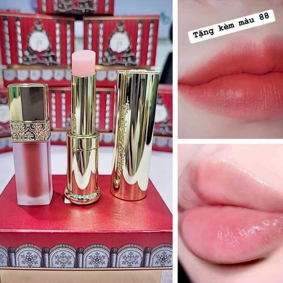 Set gồm: Son dưỡng màu hồng ( PINK ) + mini son kem lì màu hồng khô 18 Rose Pink