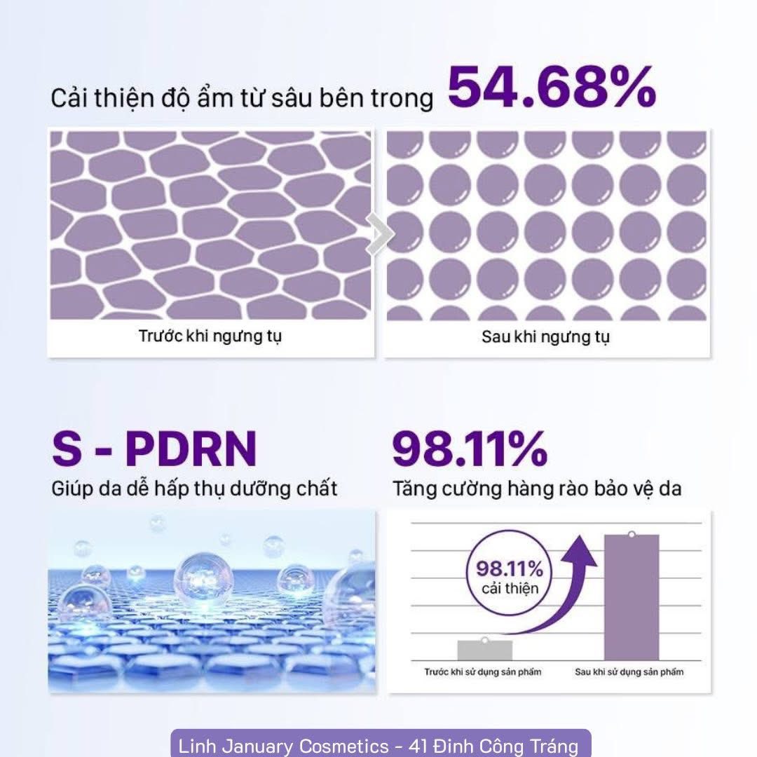 - Thành phần chính chứa PDRN cá hồi - Đột phá ứng dụng công nghệ thẩm mỹ viện, giúp bạn sở hữu làn da căng bóng, trẻ trung.