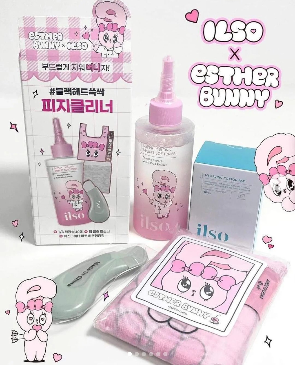 Tinh Chất Ủ Mụn Đầu Đen ILSO Sebum Super Melting Serum Softener là dung dịch làm mềm những phần mụn đầu đen, đầu trắng tan ra giúp dễ dàng trồi cồi mụn lên. Nay về phiên bản Bunny limited gồm 1 chai tinh chất ủ mụn tặng 40 miếng pads cotton và thanh đẩy mụn ILSO kèm túi đeo màu hồng.