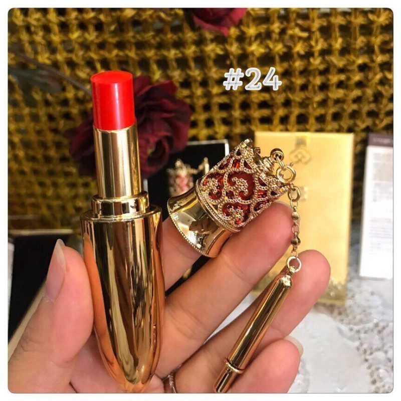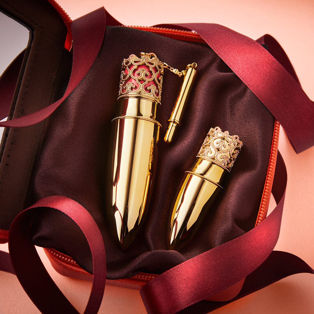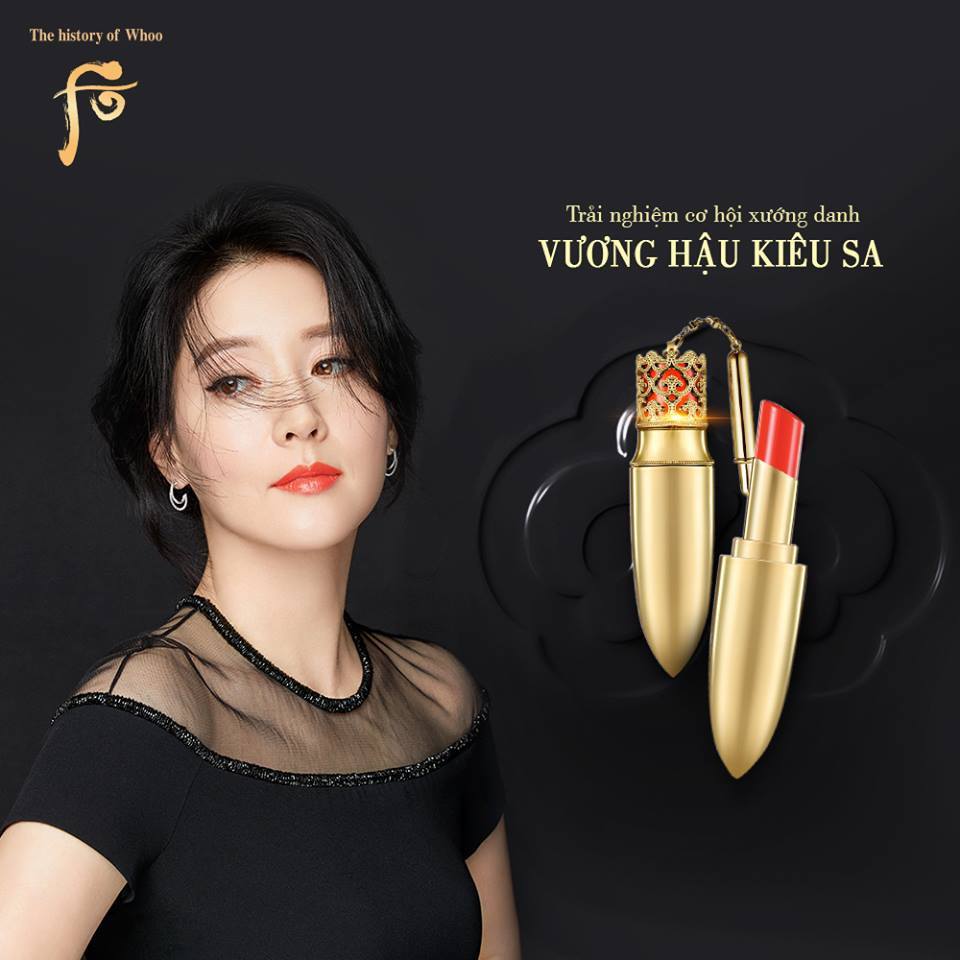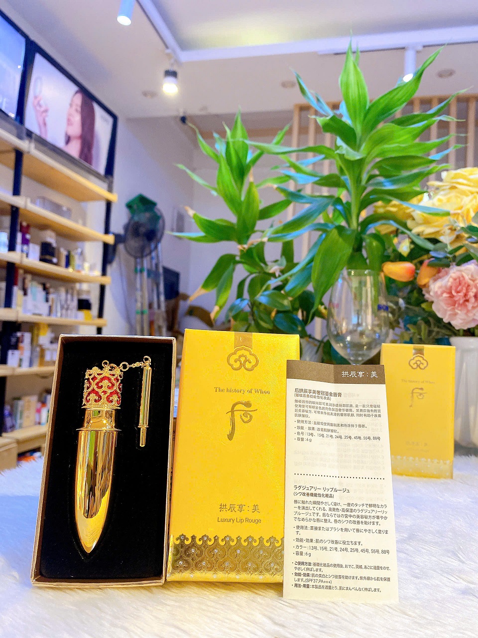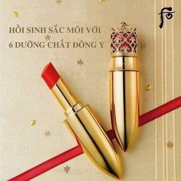 – Son môi cao cấp của Whoo chứa các thành phần quý hiếm của hoàng cung như đá ruby, ngọc trai, san hô kết hợp hoa sen, hoa bí cũng như quế, hổ phách, giúp người dùng thêm phần quý phái.