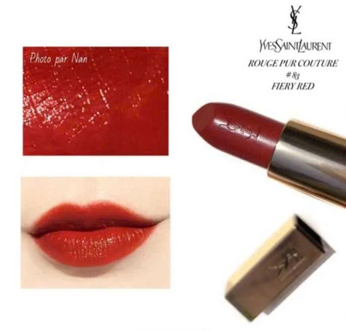Nếu đã từng dành tình cảm đặc biệt cho dòng son Rouge Pur Couture lừng danh nhà Y.S.L, chắc hẳn các nàng đều đã biết đến cái tên son Y.S.L Rouge 83. Son đỏ gạch đầy nữ tính, ngọt ngào, quyến rũ, được các nàng yêu say đắm. Màu son này ngày càng được ưa chuộng bởi độ hài hòa mà sôi nổi.