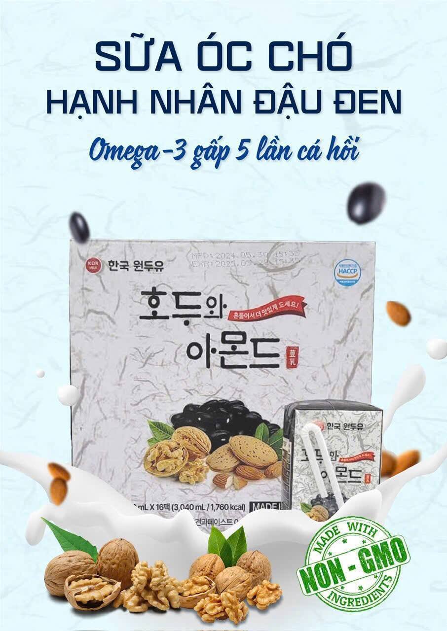 - Thành phần chính Sữa óc chó: Hạt đậu đen, Hạt hạnh nhân, Hạt óc chó
