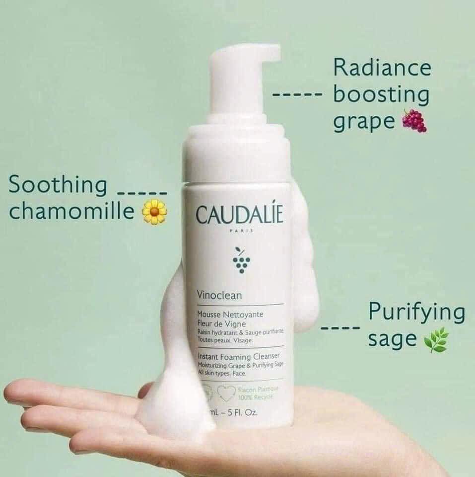 Sữa rửa mặt dặng bọt Caudalie Vinoclean là thương hiệu khá nổi tiếng của Pháp. Đây là thương hiệu chuyên về các sản phẩm chăm sóc da, cơ thể, nước hoa và các dòng mặt nạ có nguyên liệu từ thiên nhiên. Các dòng sản phẩm của thương hiệu này đều được chiết xuất từ nho, không chứa chất bảo quản, dầu khoáng, chất tẩy rửa hay các thành phần từ động vật khác. Vì vậy, đây là thương hiệu được nhiều người tiêu dùng trên toàn thế giới tin tưởng và sử dụng lâu dài. Sữa rửa mặt dạng bọt Caudalie Vinoclean là loại sữa rửa mặt tạo bọt dịu nhẹ chiết xuất từ các thành phần tự nhiên, giúp bạn làm sạch da mặt và mang lại cảm giác thư giãn, dễ chịu đặc biệt mà các sản phẩm thông thường khác không thể có. Khác với các sản phẩm sữa rửa mặt thông thường khác, sữa rửa mặt dạng bọt Caudalie Vinoclean giúp làm sạch da mặt mà không gây kích ứng, không làm bề mặt da bị tổn thương hay căng khô. Sữa rửa mặt dạng bọt Caudalie Vinoclean dễ dàng tạo bọt dịu nhẹ, bạn còn có thể có những giây phút thư giãn khá thú vị với lớp bọt trắng nhẹ nhàng này, sau đó massage da mặt để loại bỏ bã nhờn dư thừa, tạp chất, giúp lỗ chân lông sạch thoáng, cân bằng ẩm tự nhiên, giúp khôi phục lại sự rạng rỡ, mềm mại cho làn da.