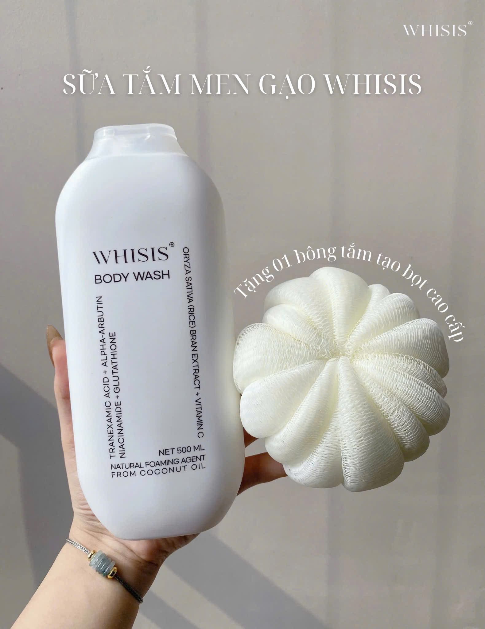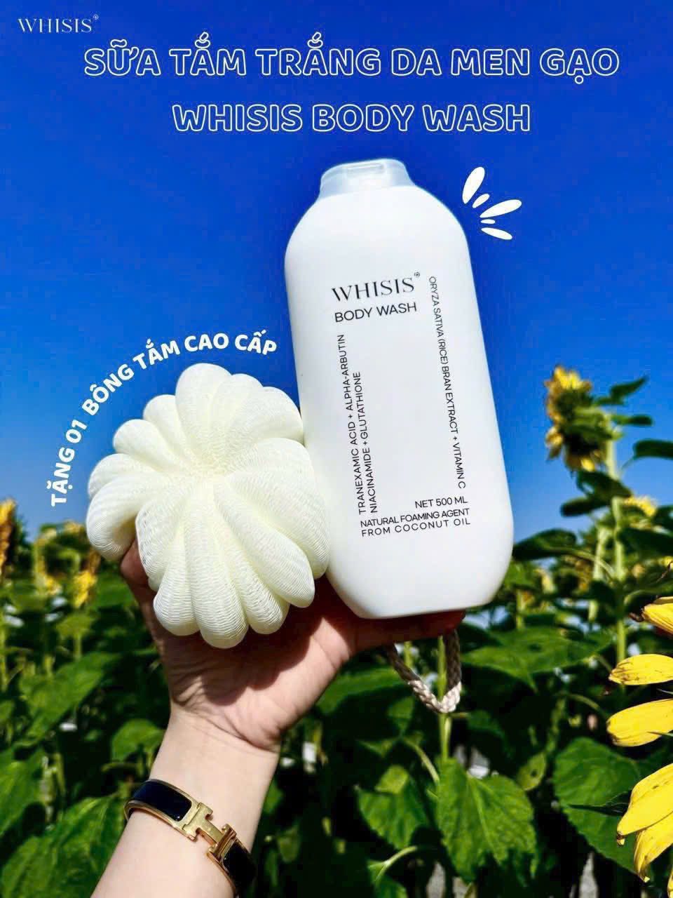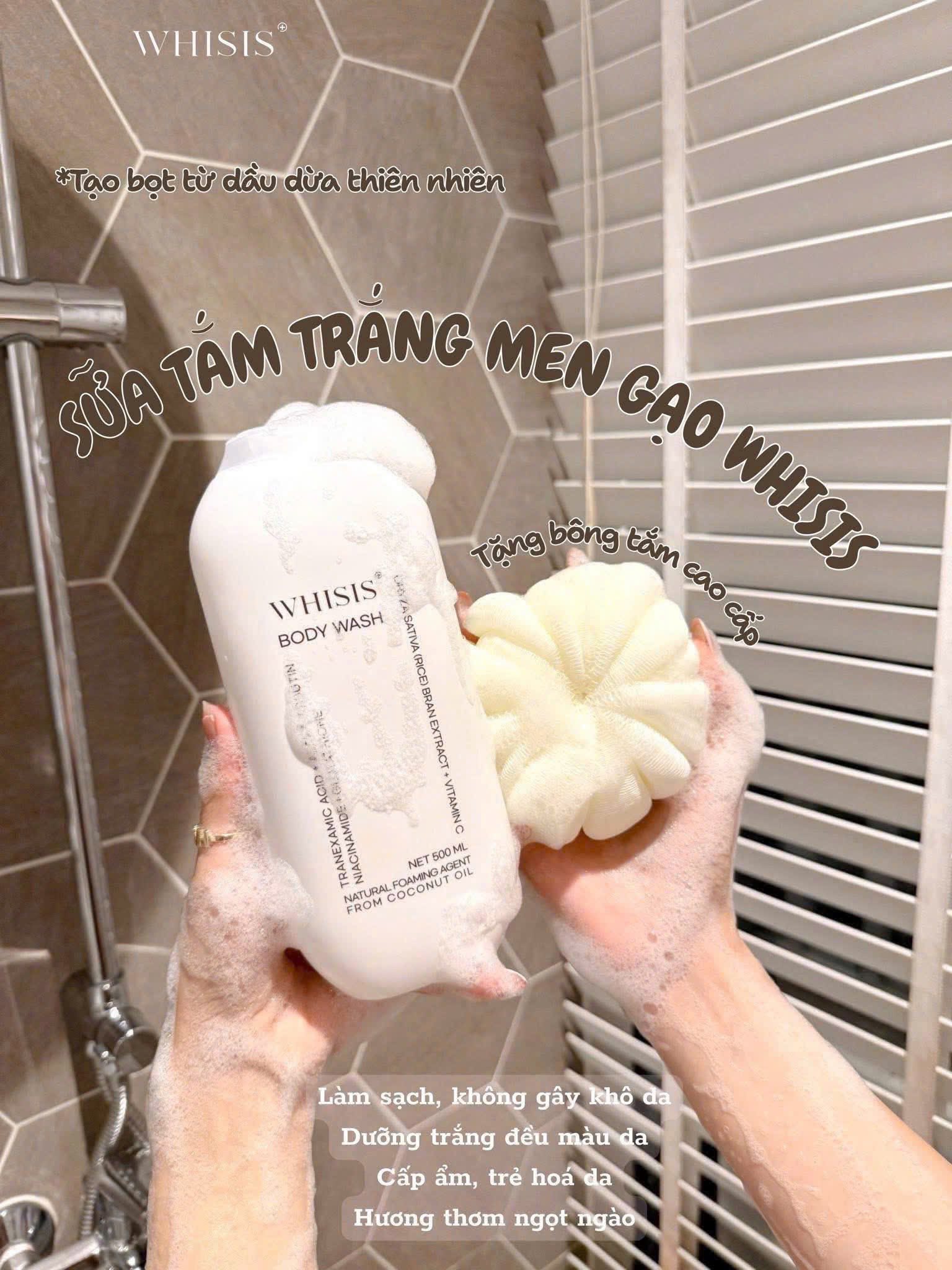 Sữa Tắm Men Sữa Gạo Sáng Da, Dưỡng Ẩm, Mềm Mượt Whisis Body Wash 500ml ( Tặng Bông Tắm )
