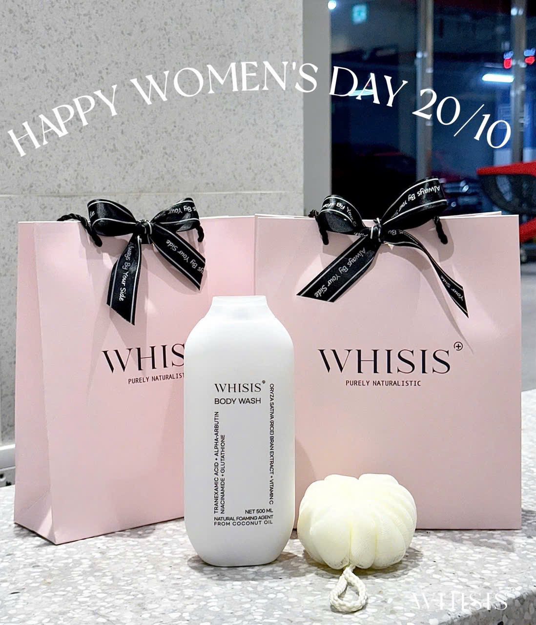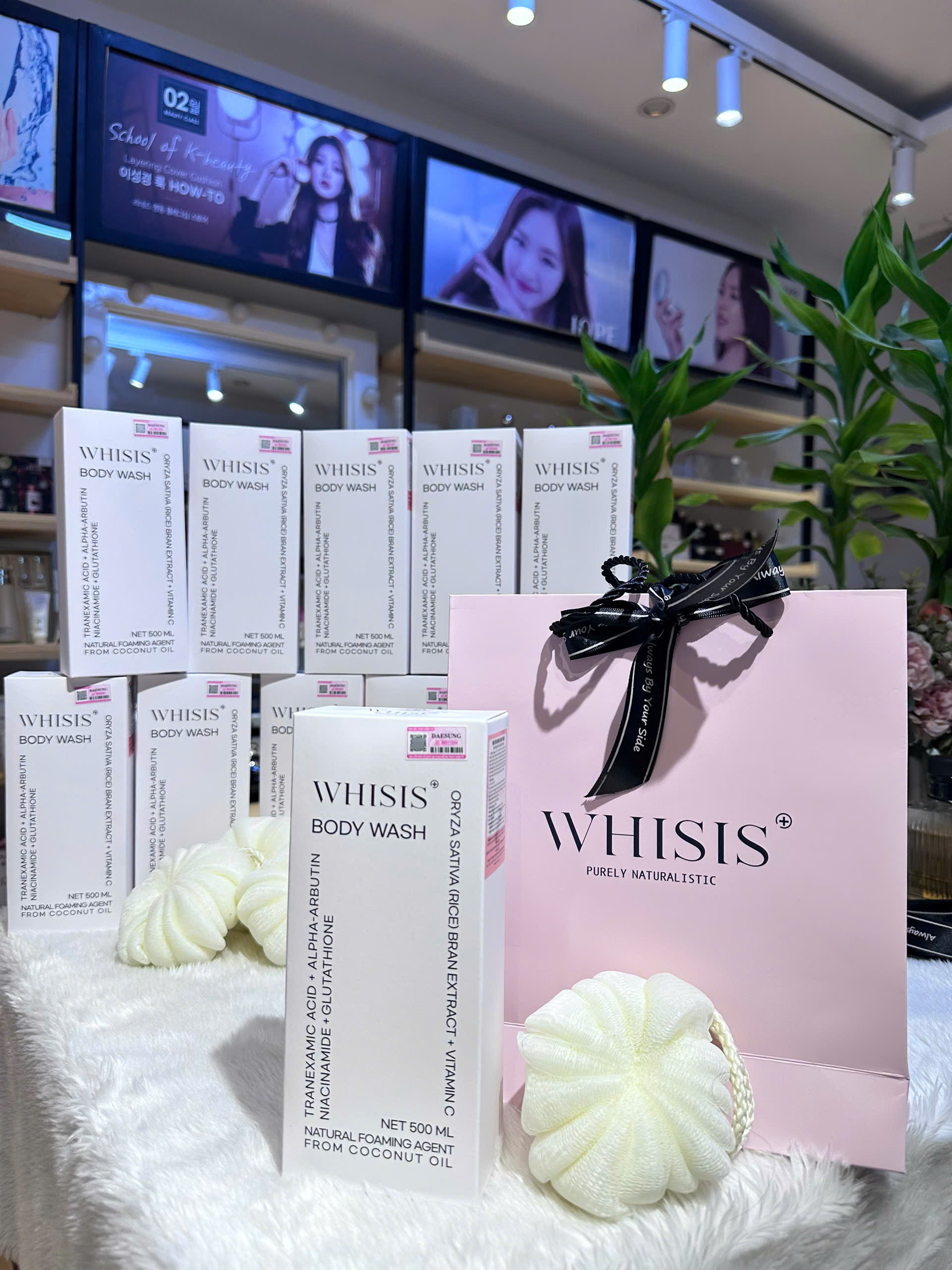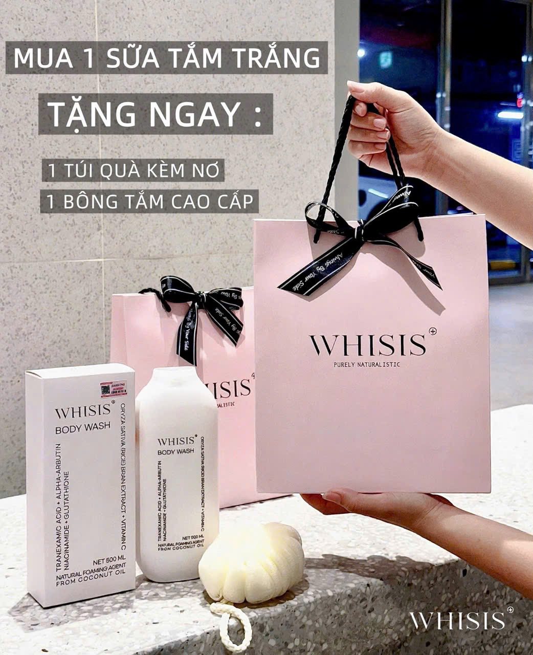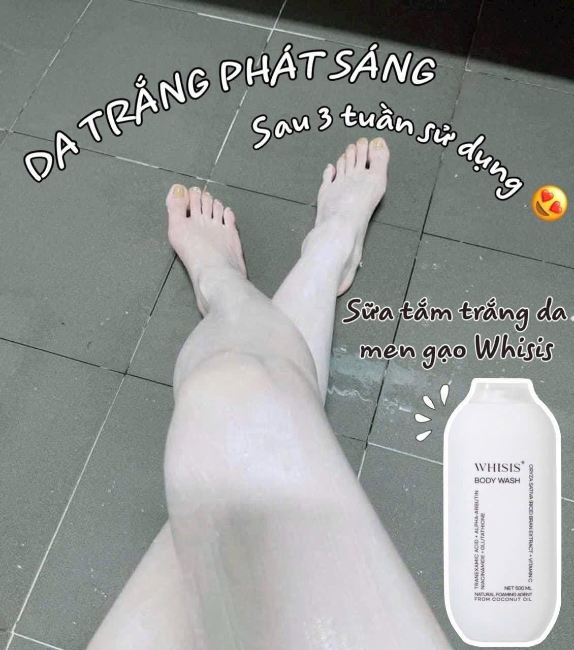 - Sữa Tắm Whisis Body Wash có chứa Tranexamic Acid, Alpha-Arbutin, Niacinamide, Glutathione, Oryza Sativa (Rice) Bran Extract, Vitamin C mang đến giải pháp làm sáng da, dưỡng ẩm và chống oxy hóa toàn diện.