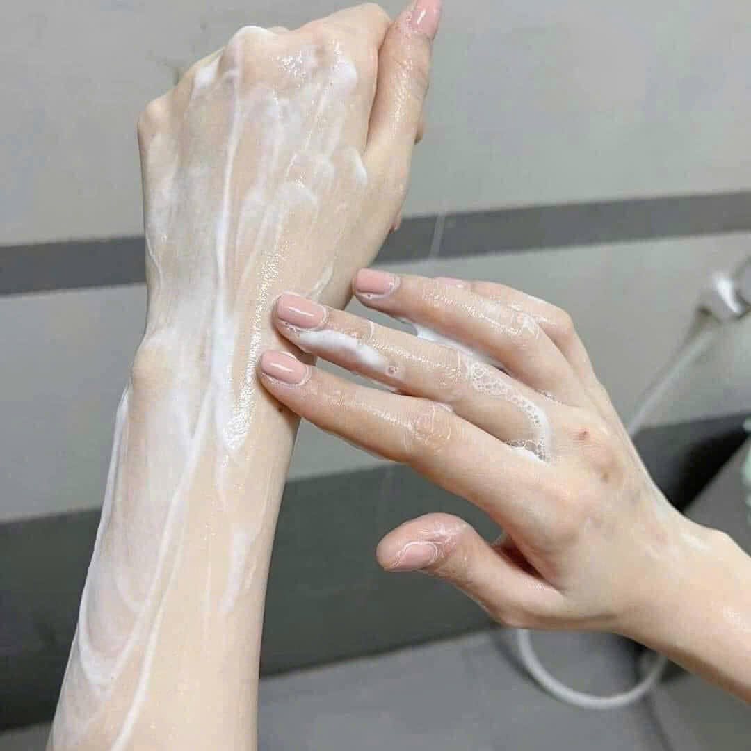 – Cho một lượng sữa tắm thích hợp vào lòng bàn tay hoặc bông tắm.