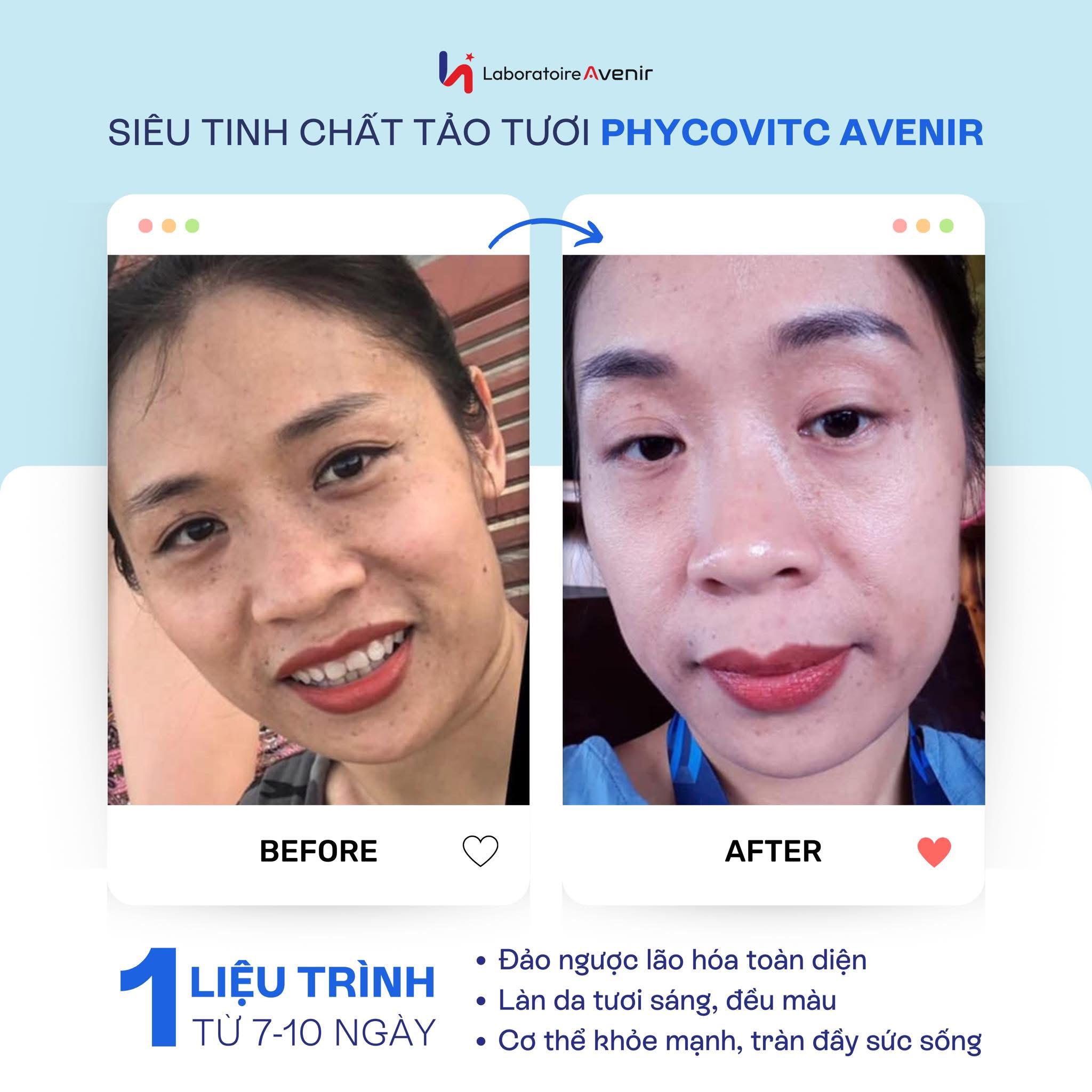- Vitamin C trong Siêu tinh chất tảo tươi PhycoVitC Avenir được chiết xuất từ quả Acerola (Sơri) cao gấp 3 lần sản phẩm thông thường. Giúp tắm da trắng sáng bật tông, căng bóng tối sau 7-10 ngày sử dụng .