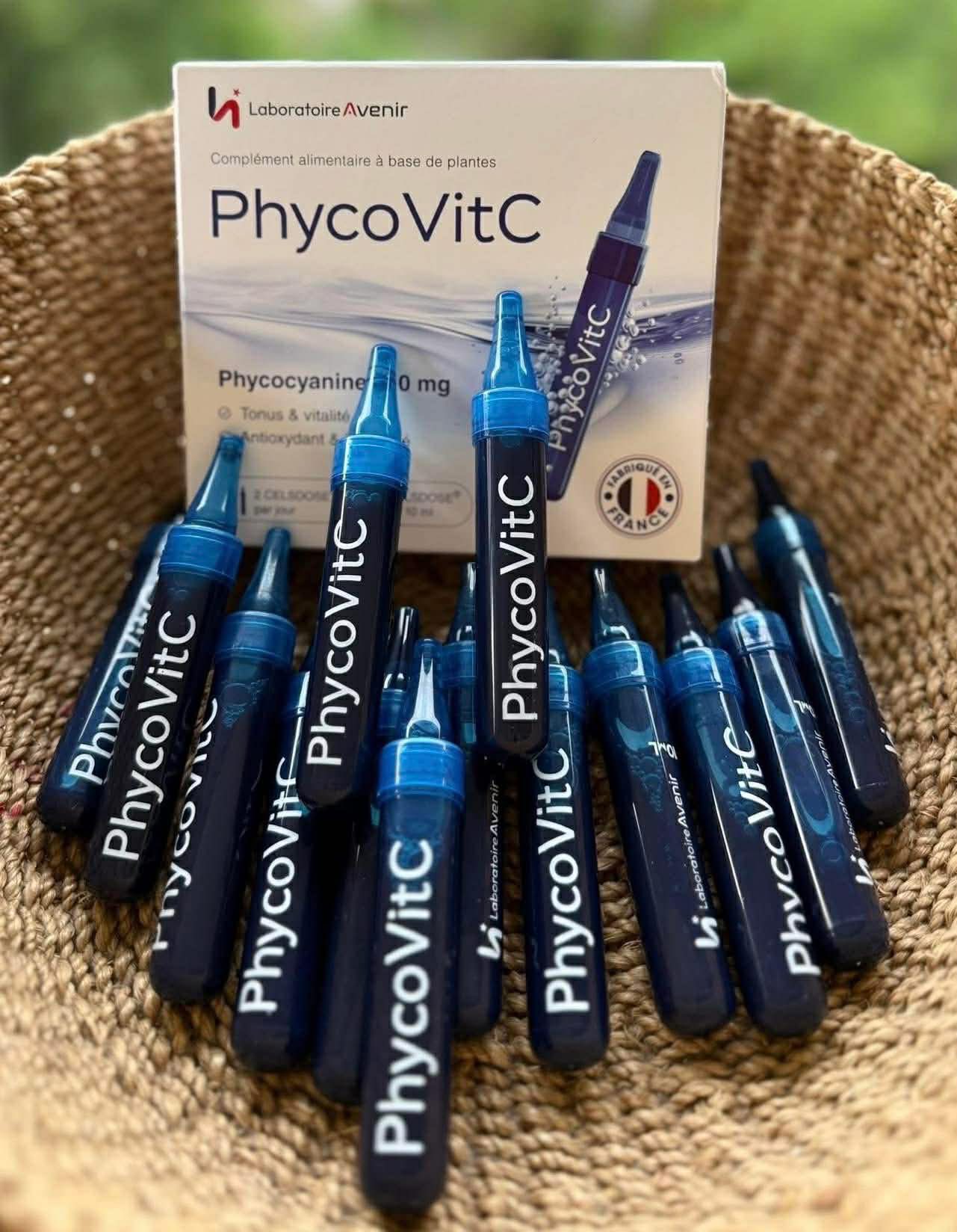- Hàm lượng Phycocyanin trong sản phẩm PhycoVitC Avenir cao nhất thế giớ i (100mg/ống) , hấp thụ hoàn toàn qua thành ruột ngay khi vừa uống.