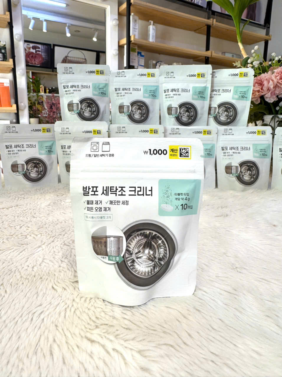 - Viên vệ sinh tẩy rửa HÀN QUỐC có tác dụng diệt khuẩn, tẩy trắng, khử mùi rất hiệu quả giúp quần áo không lo bám bẩn hoặc bị nấm mốc từ lồng máy giặt, từ hệ thống gioăng cao su của máy giặt.