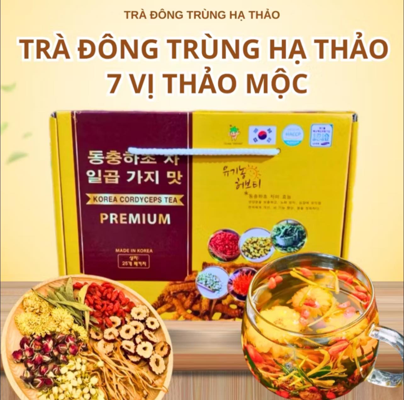 Trà đông trùng hạ thảo 7 vị thảo mộc giúp an thần, đẹp da, tăng cường sức khoẻ Korea Cordyceps Tea Premium