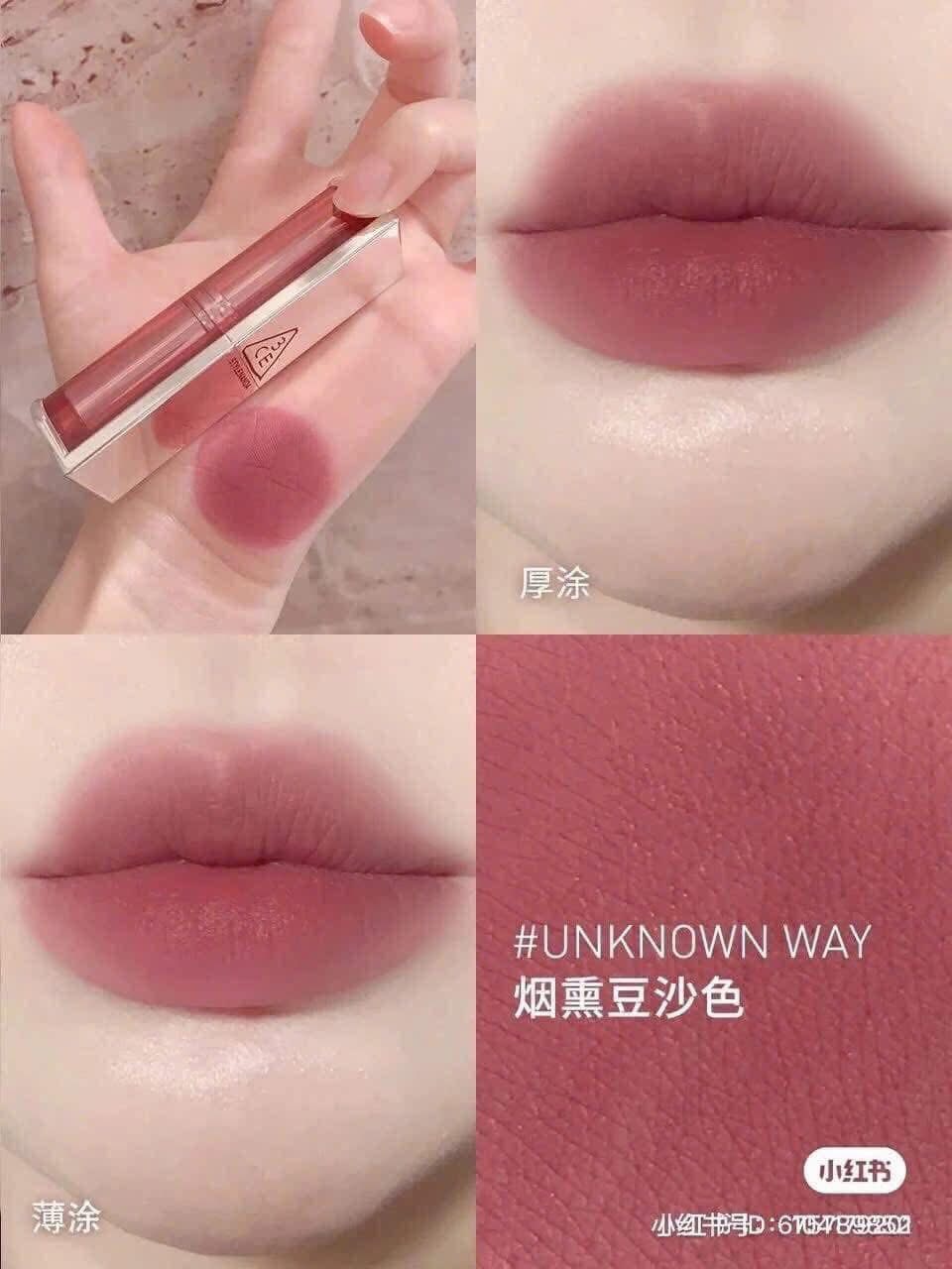 Công thức chất son mới của son 3CE màu hồng hoa cà đã nhẹ nhàng xoá tan những định kiến lâu ngày về son lì. Chất son Matte giờ đây đã được nâng cấp lên một phiên bản mới; khiến cho nàng càng thích mê 3CE Unknown Way hơn nữa.
