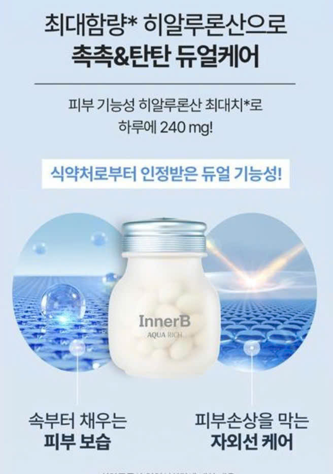 - Viên Uống InnerB Aqua rich bổ sung Collagen cấp nước và chống hiện tuợng da mất cân bằng độ ẩm.